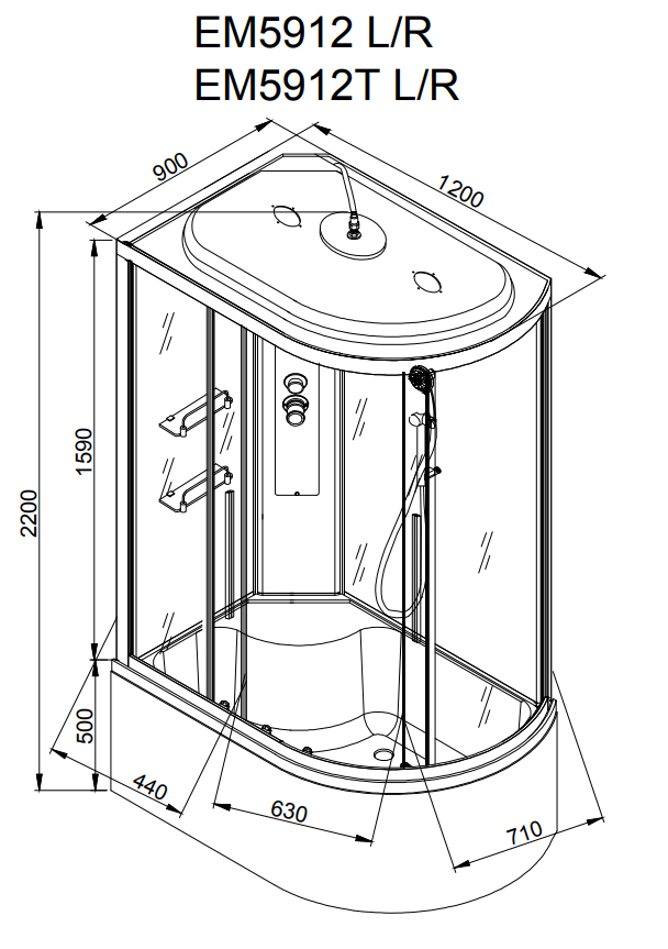 Душевая кабина AvaCan EM5912L/ EM5912R стандартная 120х90х220 см хром/матовое