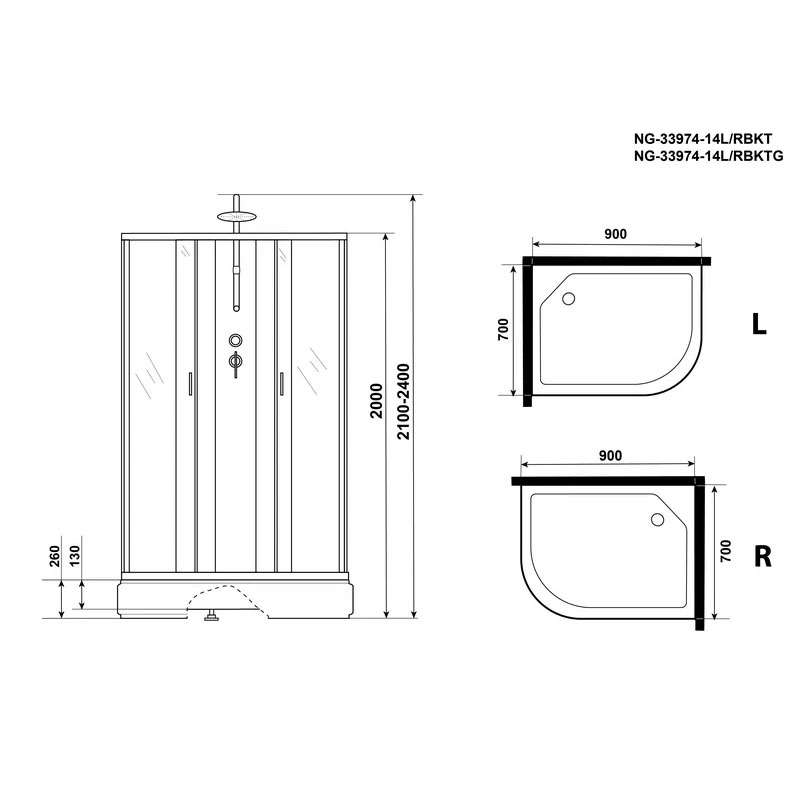 Душевая кабина без крыши верхний душ Niagara Classic NG-33974-14 BKT L/R 90х70х210-240 см матовый хром/матовое 339744LBKT/339744RBKT