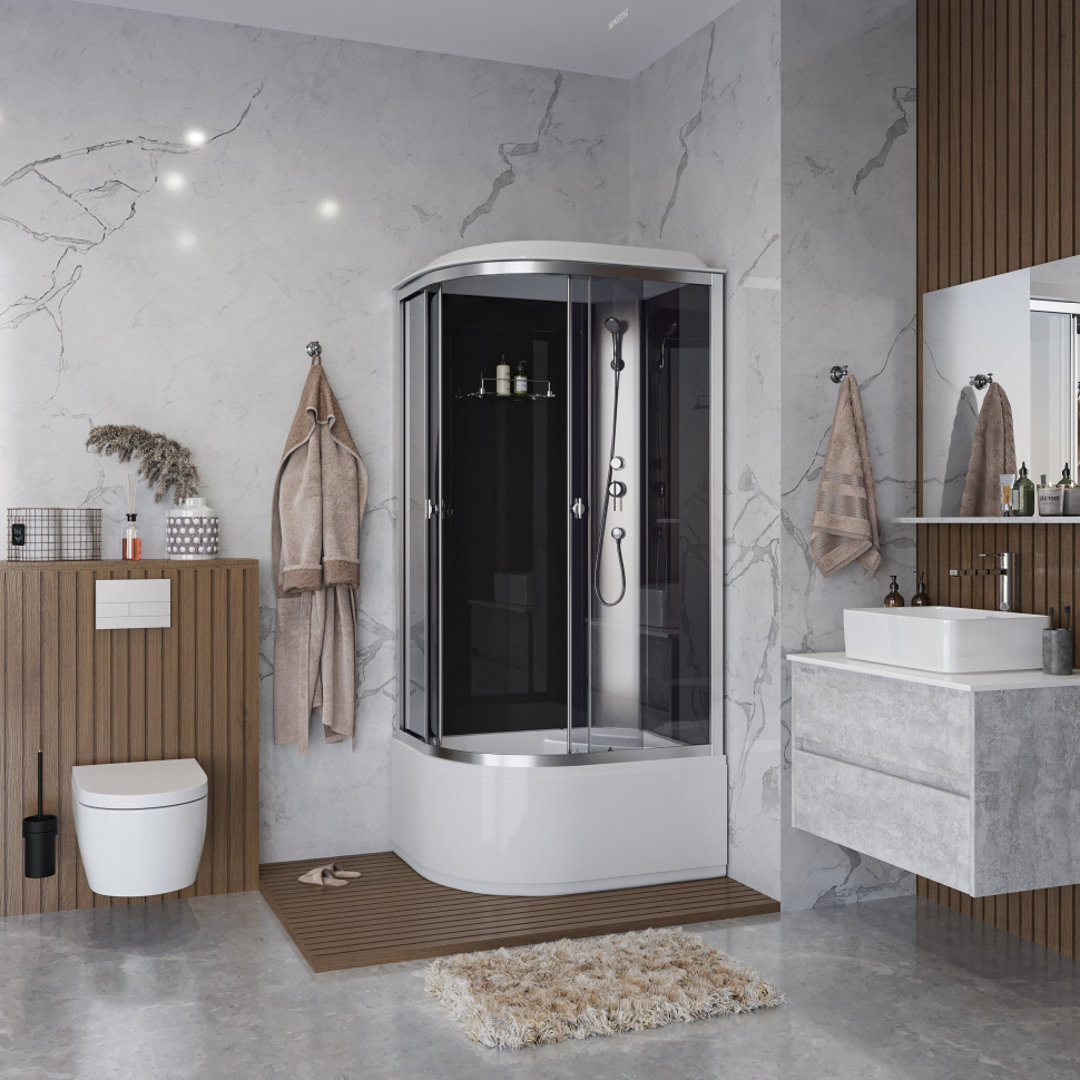 | Оснащение | Верхний, ручной душ, смеситель, полочка, вентиляция |