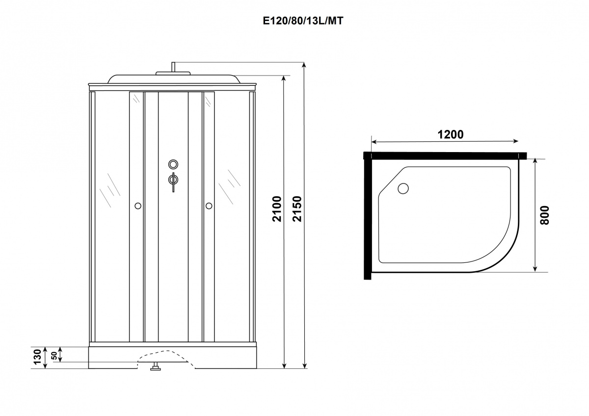 Душевая кабина Niagara Eco 120х80х215 см L/R матовый хром/матовое E120/80/13L/MT/ E120/80/13R/MT