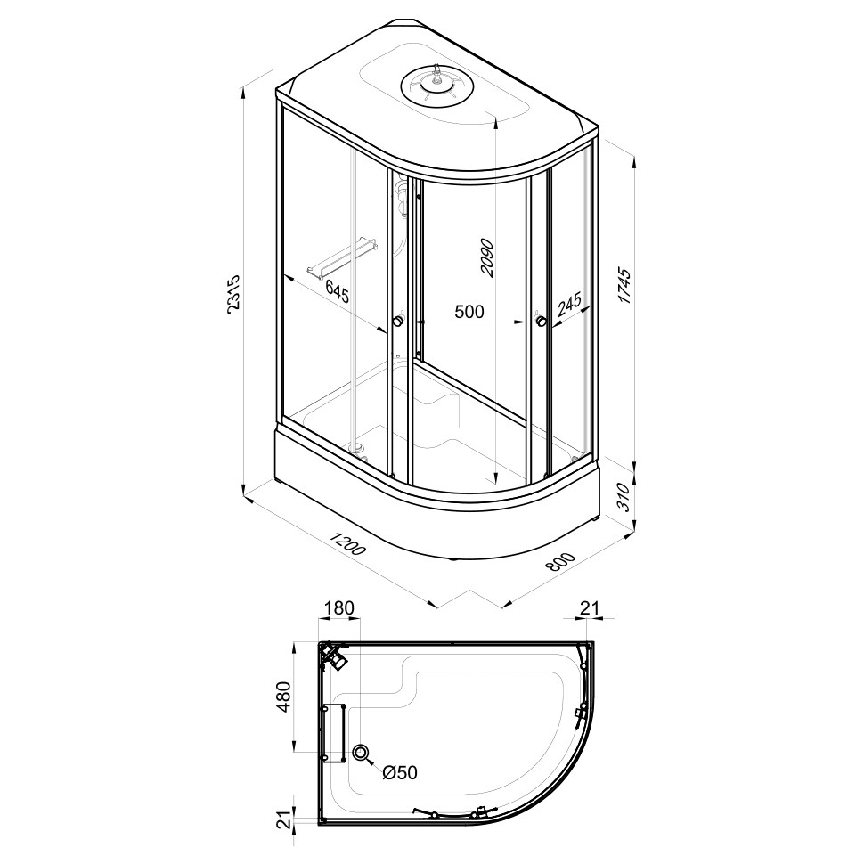 Душевая кабина Triton Коралл-Лайт В 120х80 белый/прозрачное с рисунком Щ0000068947/ Щ0000068948