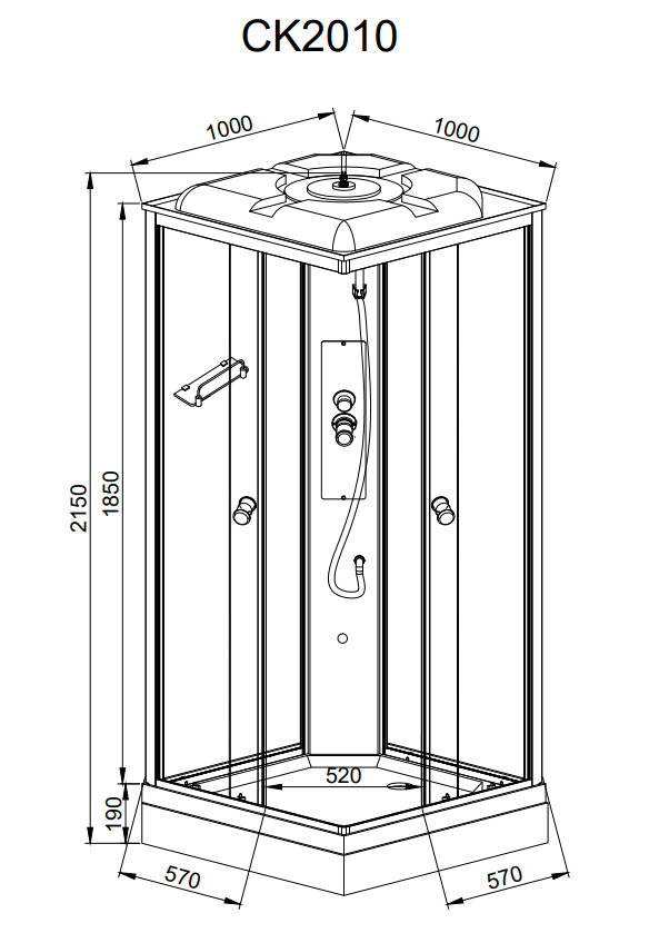 Душевая кабина AvaCan CK2010N без крыши 100х100х203 см матовый хром/матовое