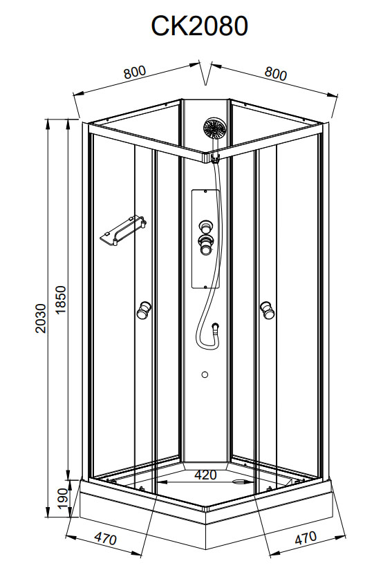 Душевая кабина AvaCan CK2080N без крыши 80х80х203 см матовый хром/матовое