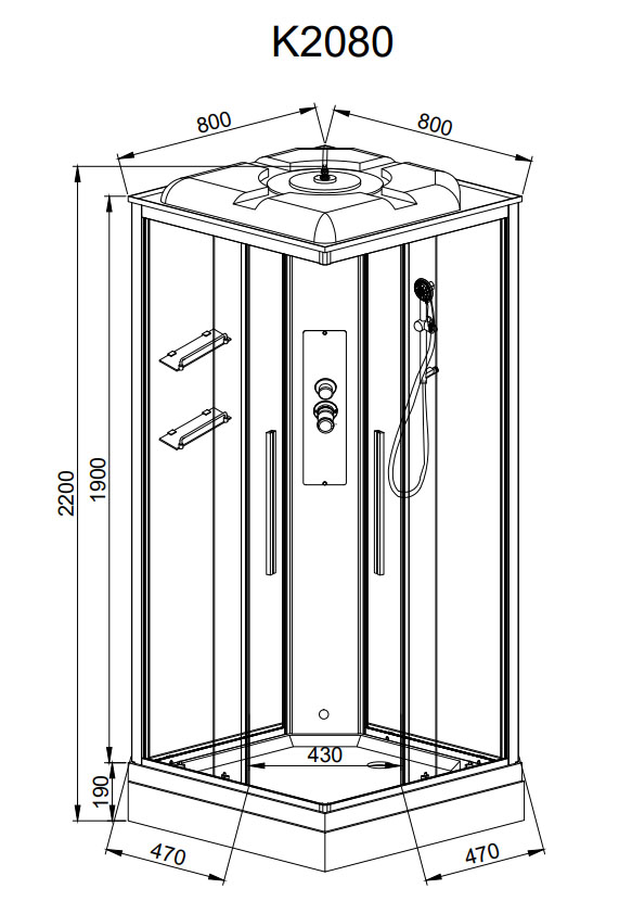Душевая кабина AvaCan K2080LED 80х80х220 см хром/прозрачное