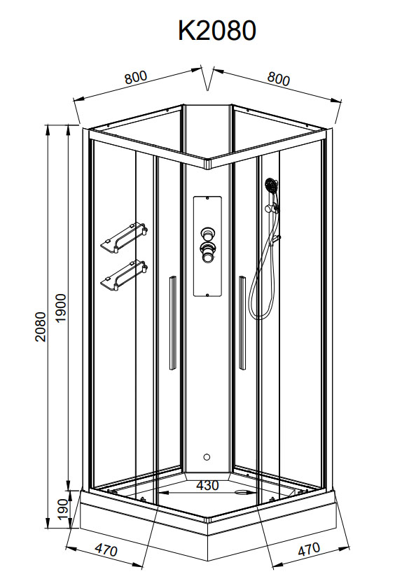 Душевая кабина AvaCan K2080N без крыши 80х80х208 см хром/прозрачное