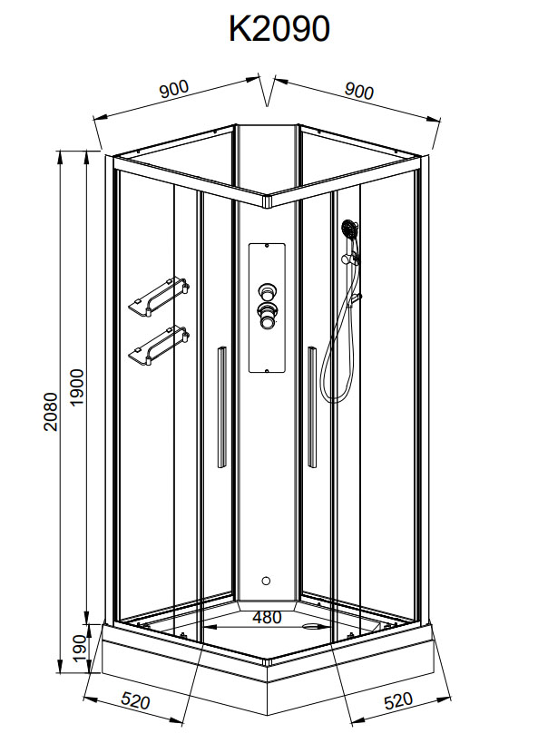 Душевая кабина AvaCan K2090N без крыши 90х90х208 см хром/прозрачное