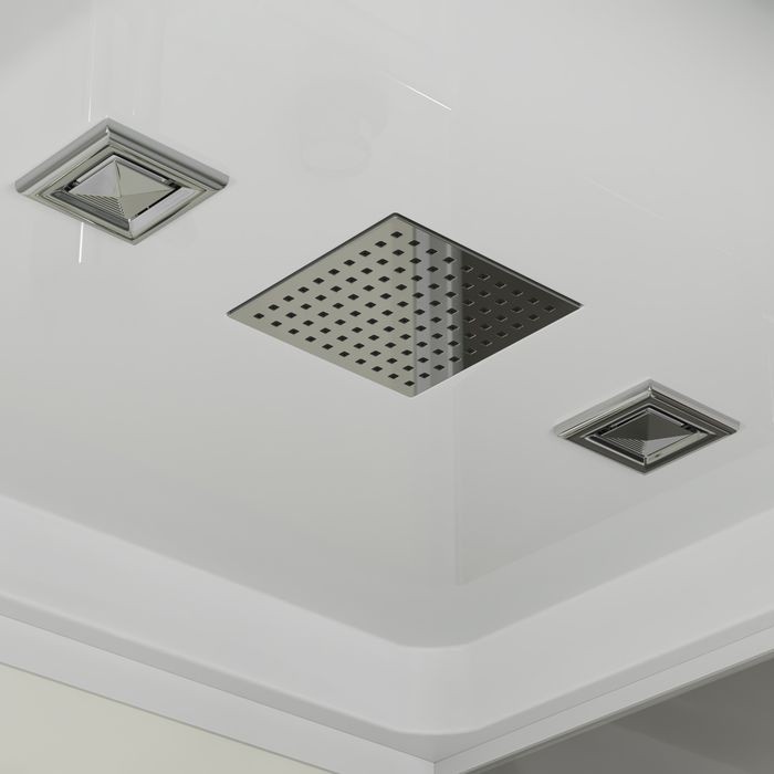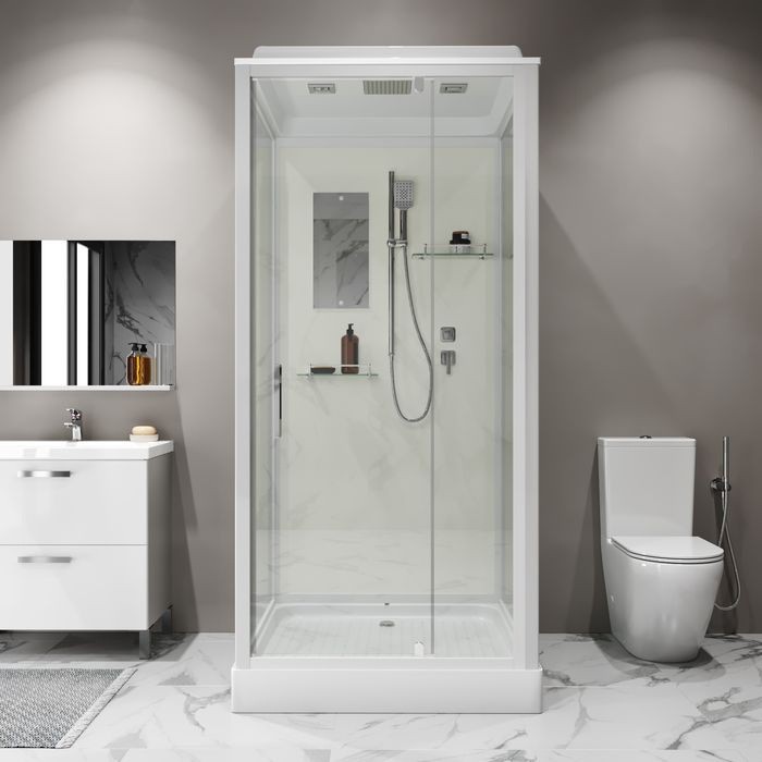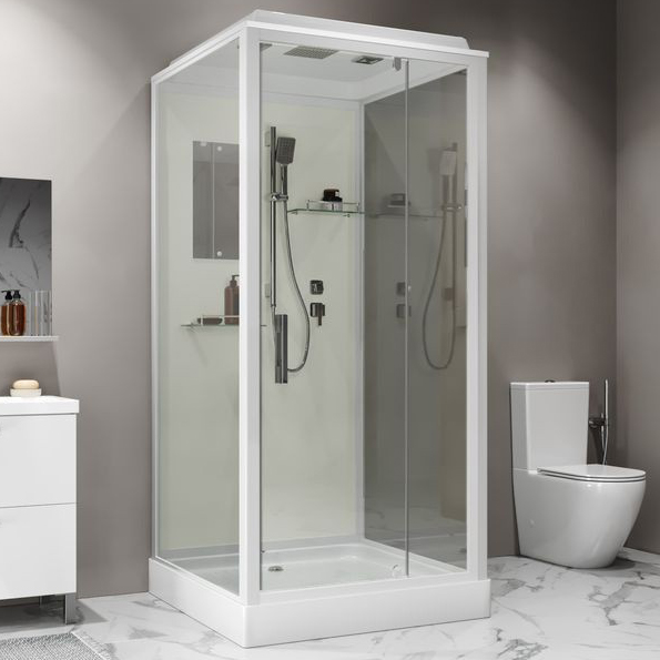 | Оснащение | Верхний душ, душевой гарнитур, смеситель, 2 полочки, зеркало, вентиляция |