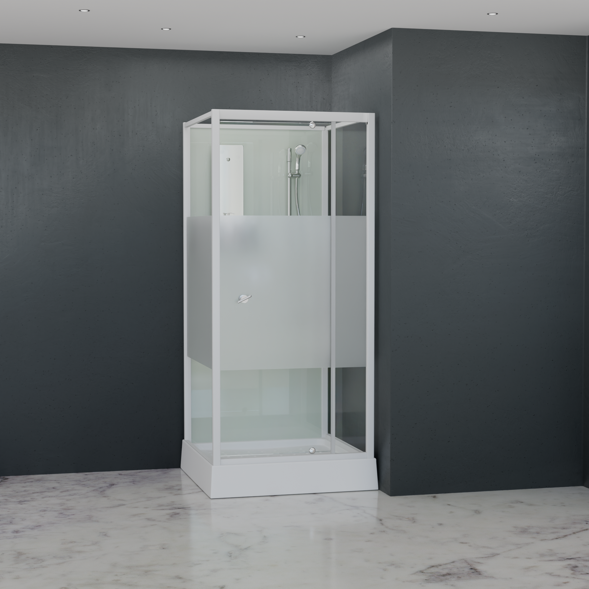 Стекло матово-прозрачное — закаленное, толщиной 6 мм (задняя стенка), боковые и дверь 5мм. Гидрофобное покрытие стекла составом от извести “Easy Clean” — «Легкая очистка», в простонародье «антикапля».