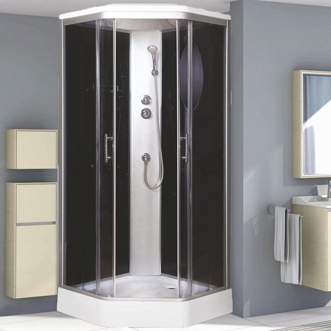 | Оснащение | Верхний, ручной душ, смеситель, полка, зеркало |