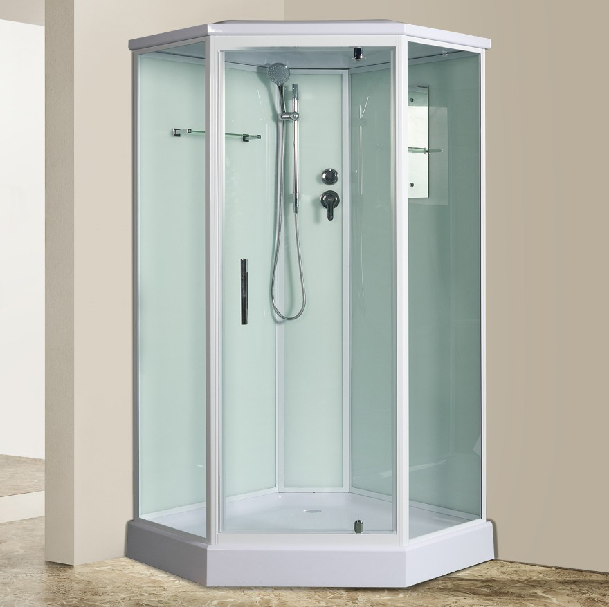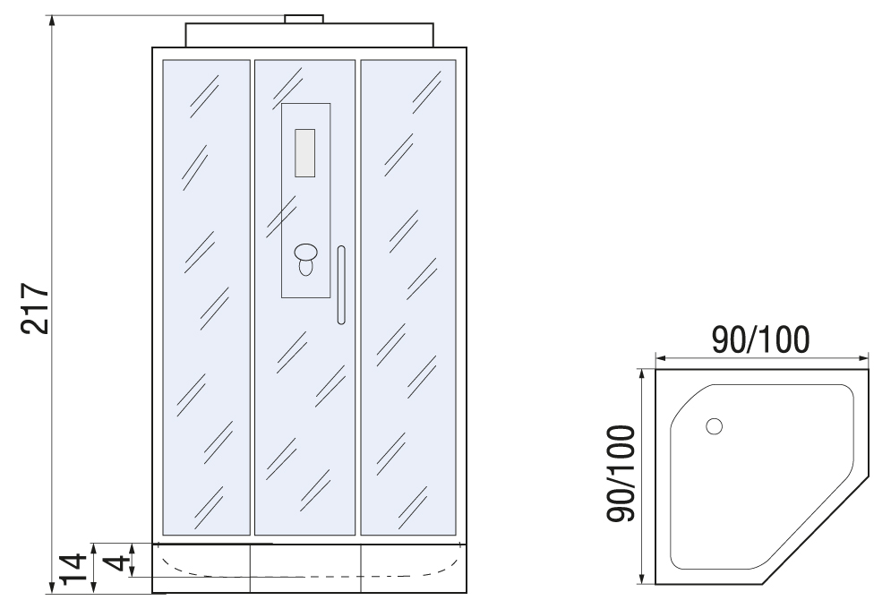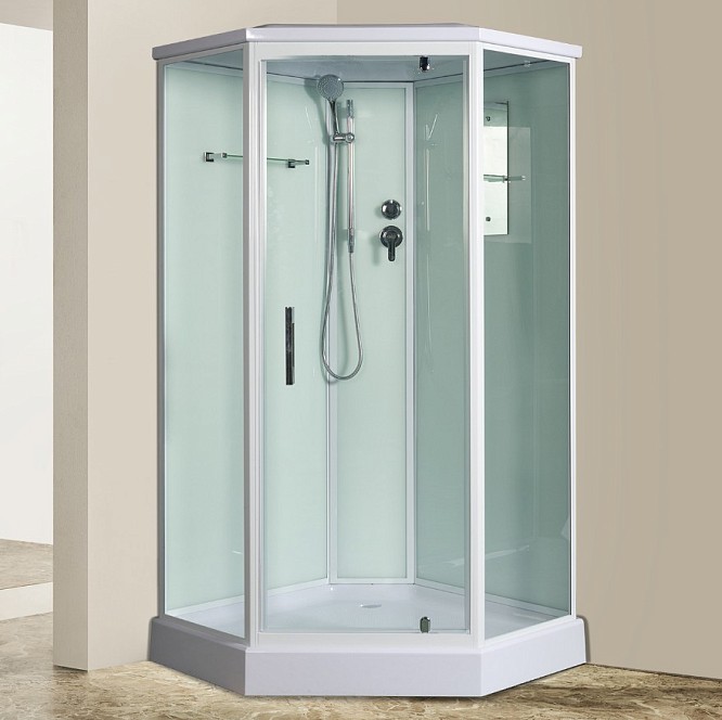| Оснащение | Верхний, ручной душ, вентиляция, верхний свет, полка, зеркало, смеситель |