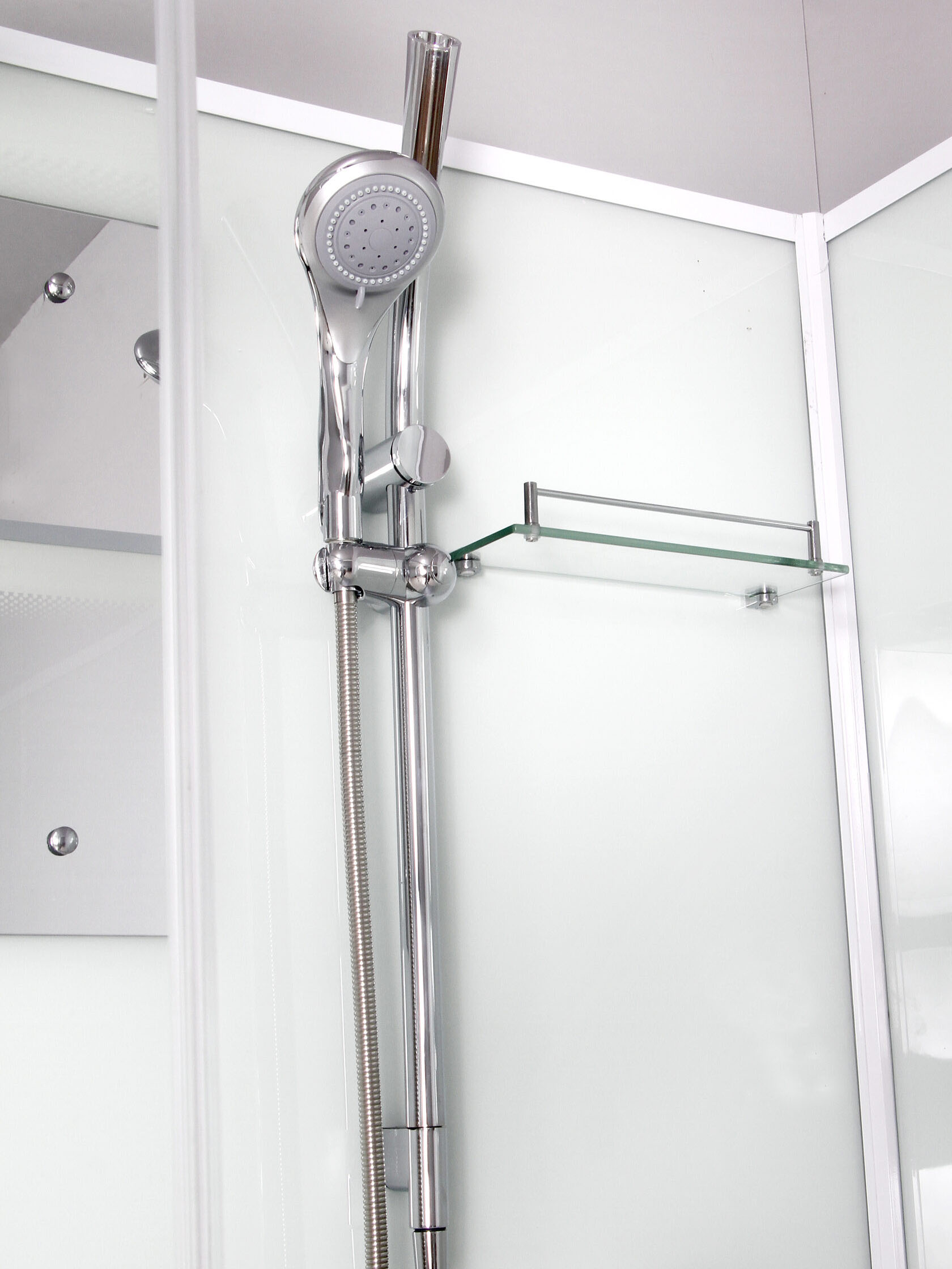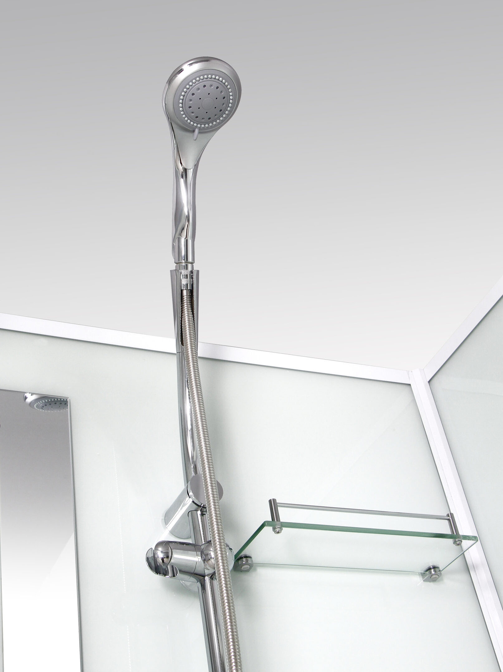 | Оснащение | Ручной душ, полка, зеркало, смеситель |