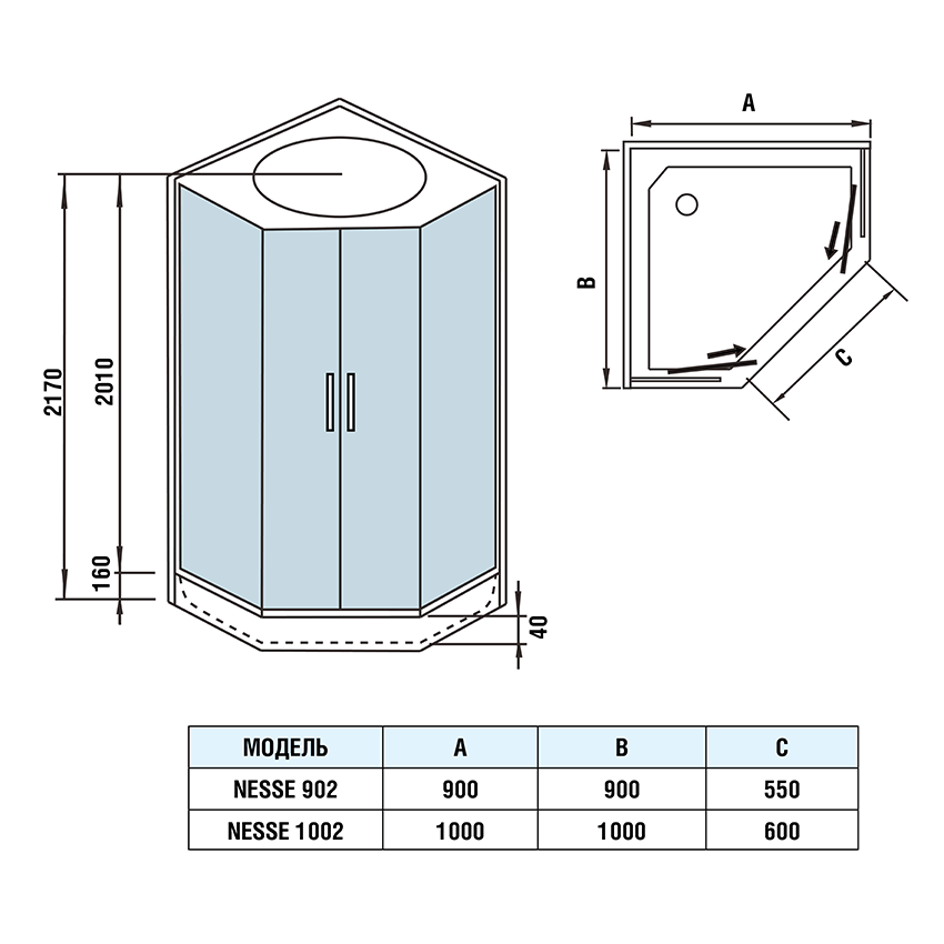 Душевая кабина WeltWasser NESSE 902 (90х90х217 см) матовый хром/прозрачное 10000003280