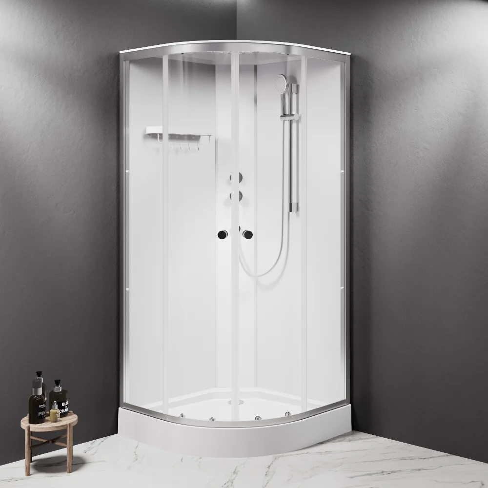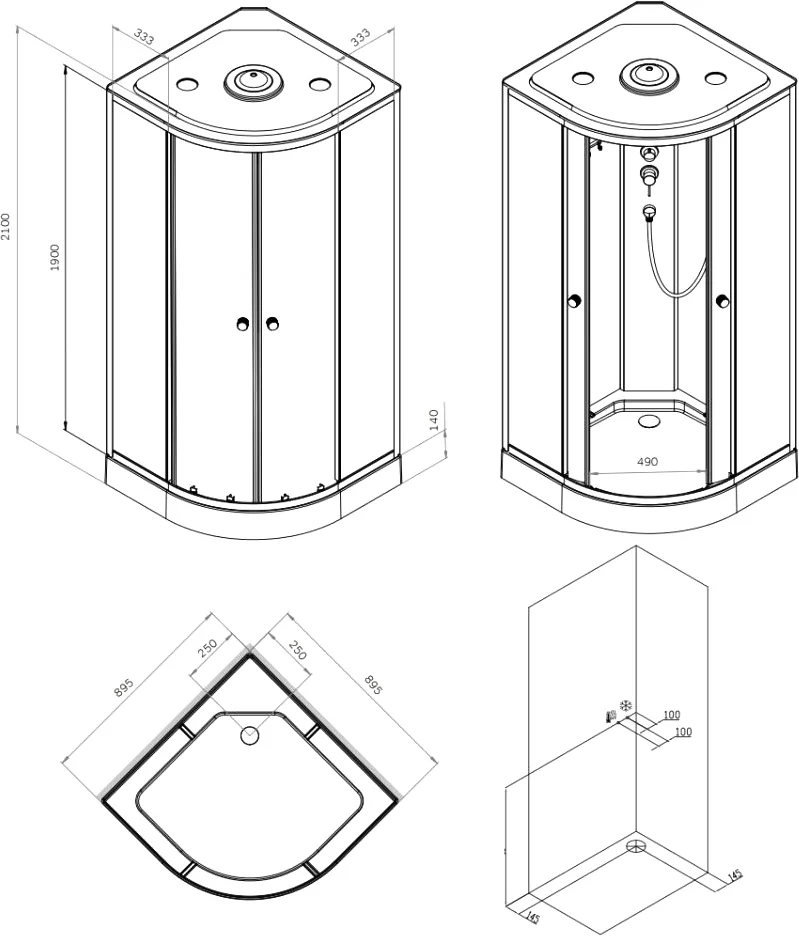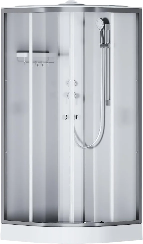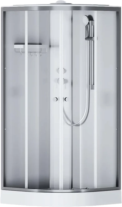 Оснащение: верхний душ, 5-режимный ручной душ, смеситель, полка