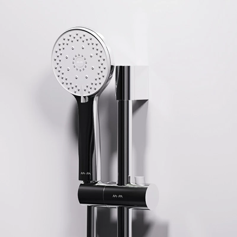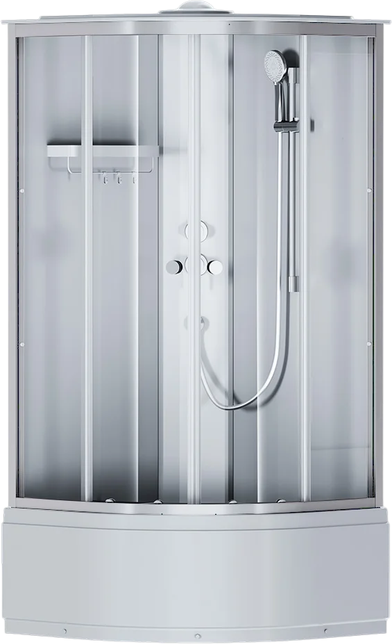 Оснащение: верхний душ, 5-режимный ручной душ, смеситель, полка