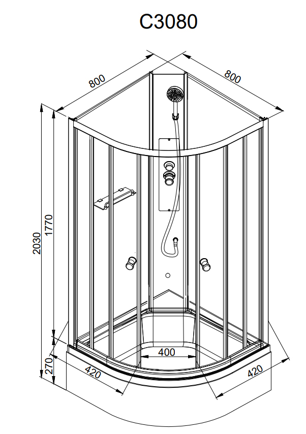 Душевая кабина AvaCan C3080N без крыши 80х80х203 см хром матовый/матовое