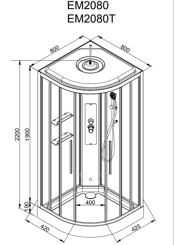 Душевая кабина AvaCan EM2080N без крыши 80х80х208 см хром/матовое
