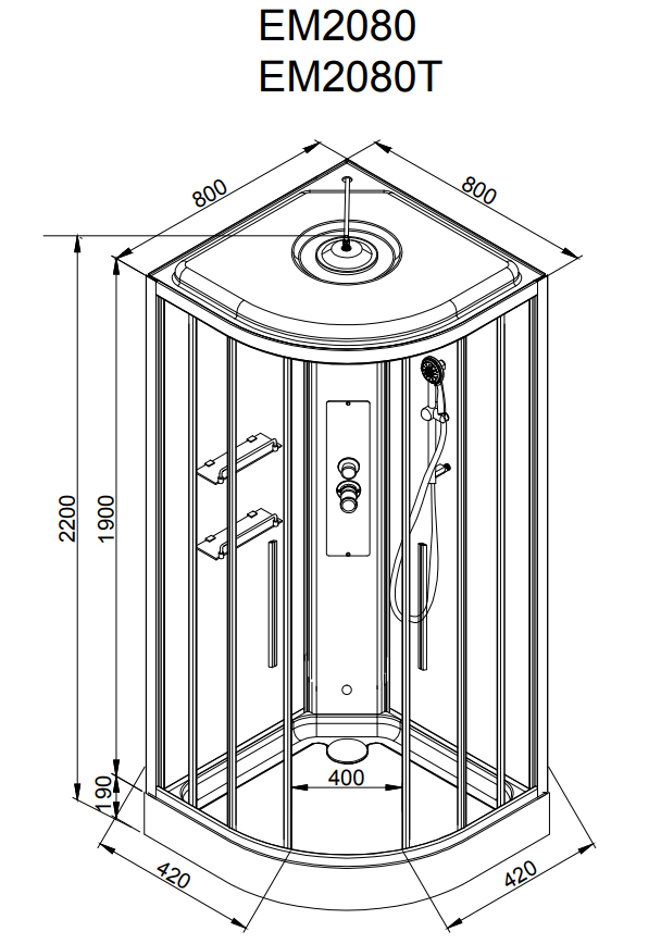 Душевая кабина AvaCan EM2080T стандартная 80х80х220 см хром/прозрачное