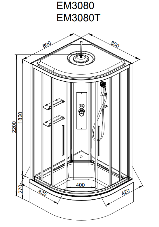 Душевая кабина AvaCan EM3080 стандартная 80х80х220 см хром/матовое