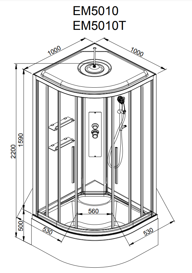 Душевая кабина AvaCan EM5010 стандартная 100х100х220 см хром/матовое