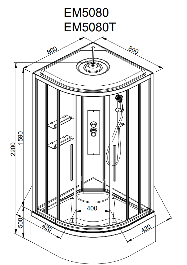 Душевая кабина AvaCan EM5080N без крыши 80х80х208 см хром/матовое