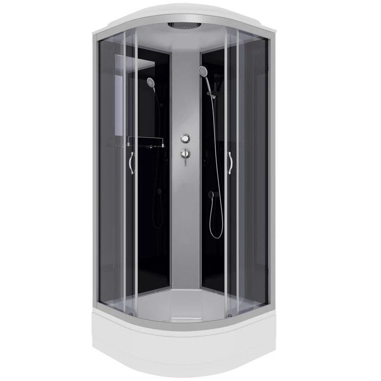 | Оснащение | Верхний, ручной душ, смеситель, полочка, зеркало, вентиляция |