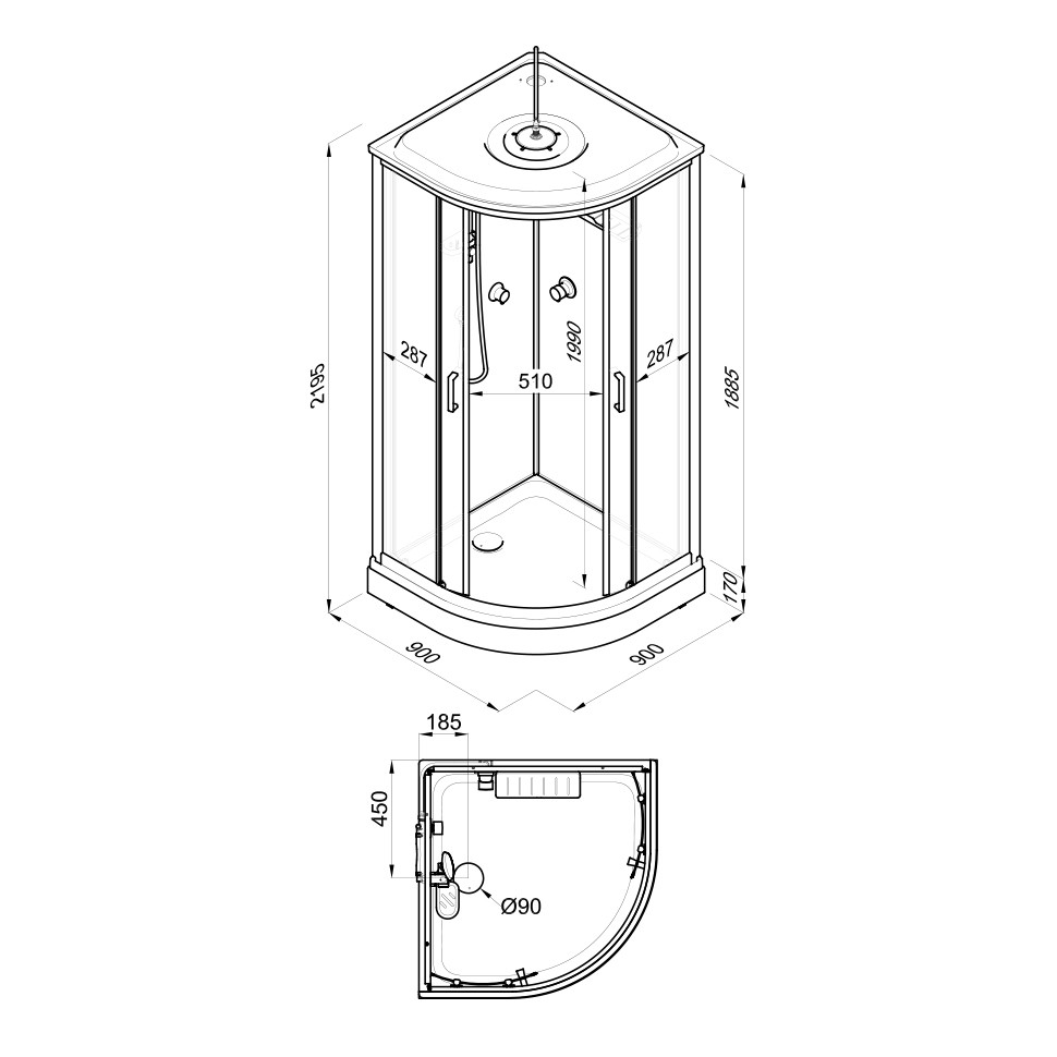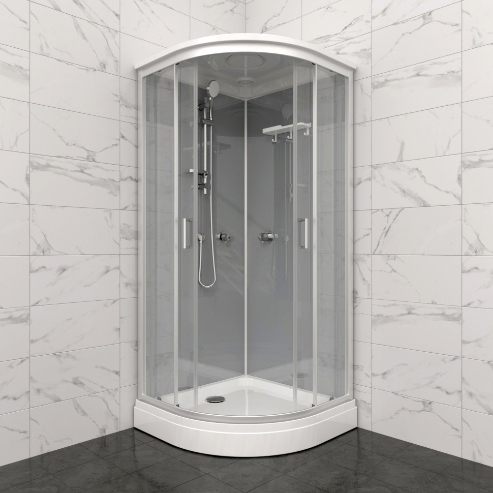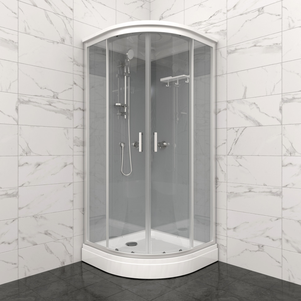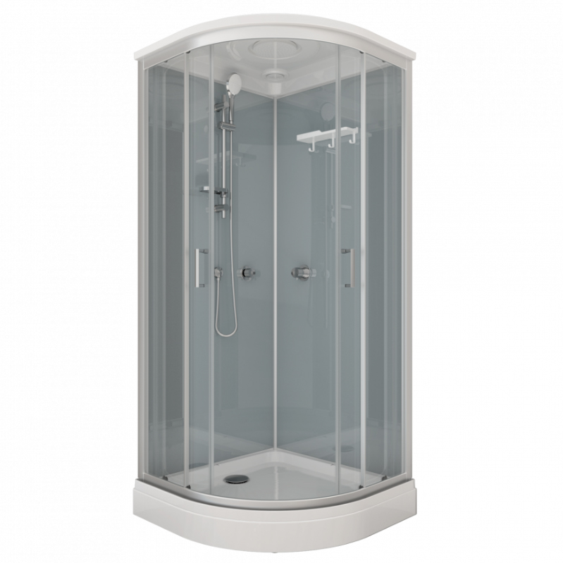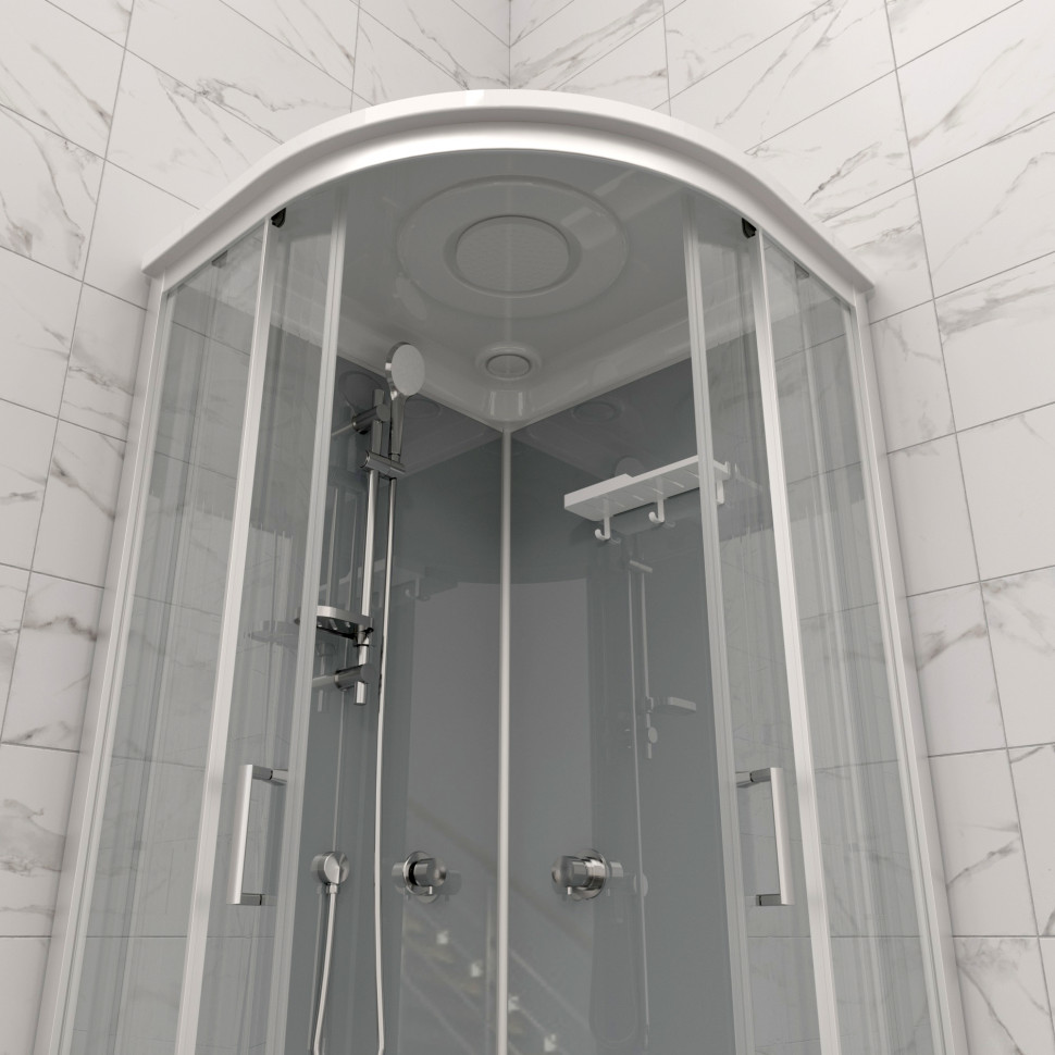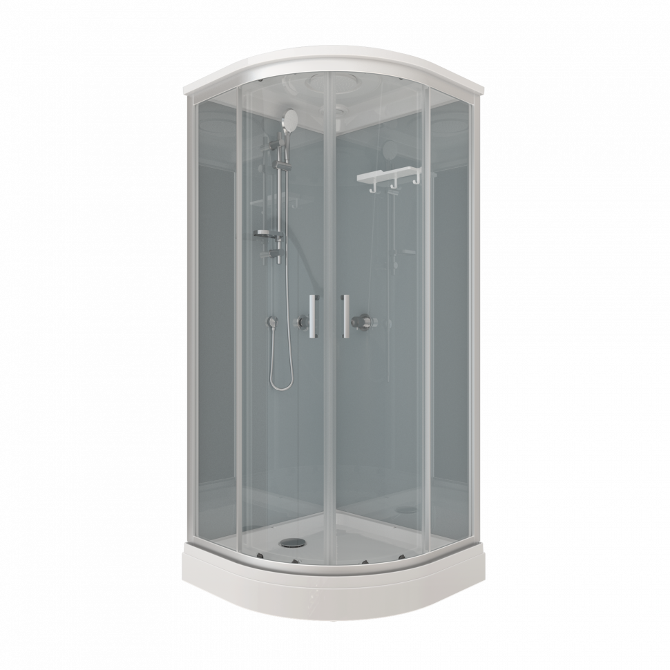 | Оснащение | Верхний, ручной душ, смеситель, полка, крючки |