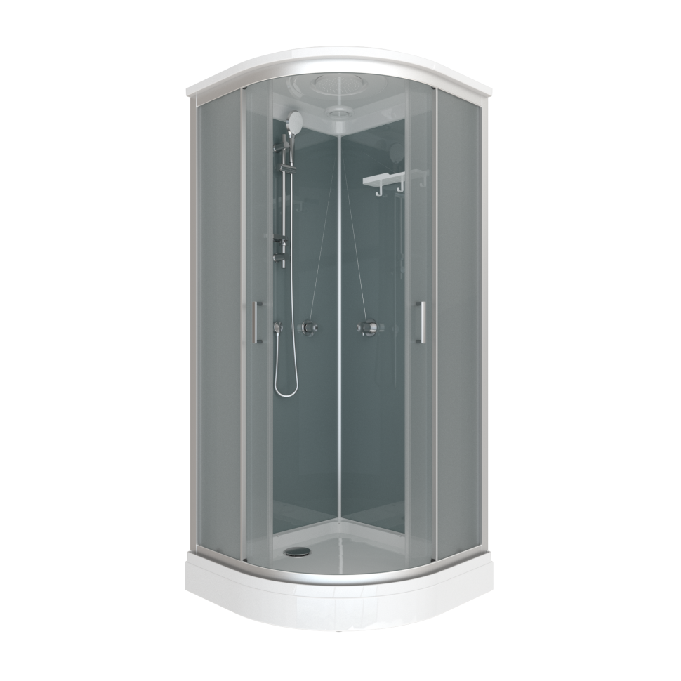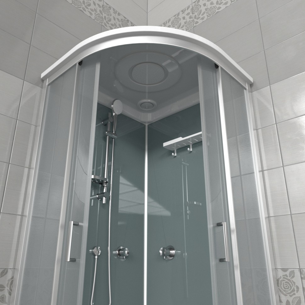 | Оснащение | Верхний, ручной душ, смеситель, полка, крючки |