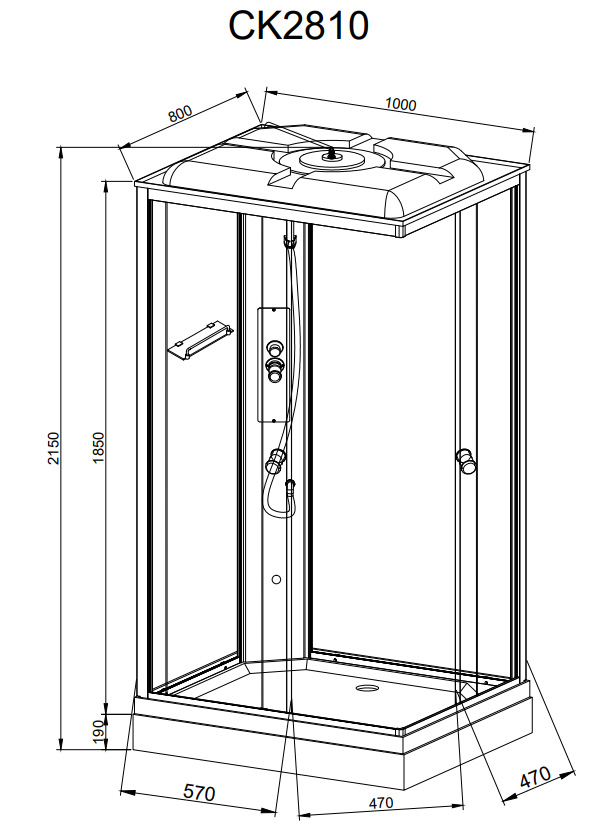 Душевая кабина AvaCan CK2810 стандартная 100х80х215 см матовый хром/матовое