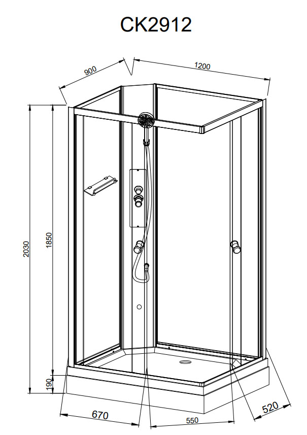 Душевая кабина AvaCan CK2912N без крыши 120х90х203 см матовый хром/матовое