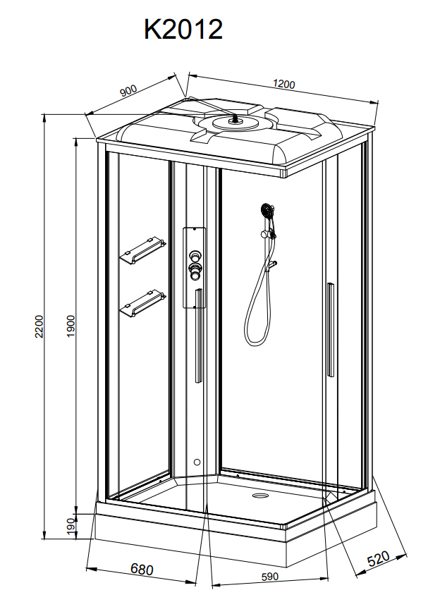 Душевая кабина AvaCan K2012 стандартная 120х90х220 см хром/прозрачное