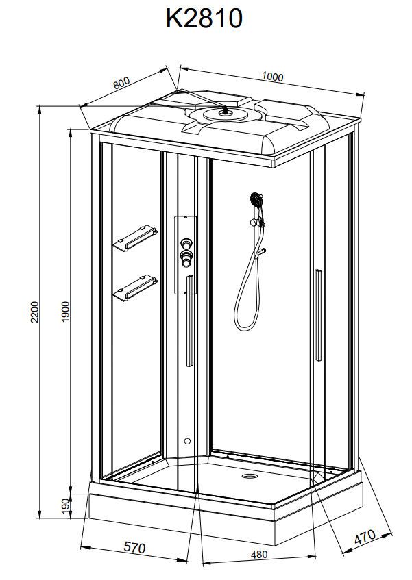 Душевая кабина AvaCan K2810N без крыши 100х80х208 см хром/прозрачное