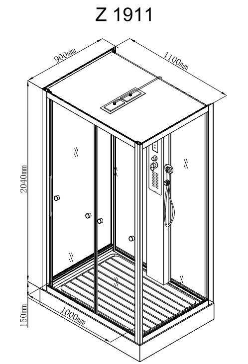 Душевая кабина AvaCan Z1911MT 110х90х220 см хром/прозрачное-матовое