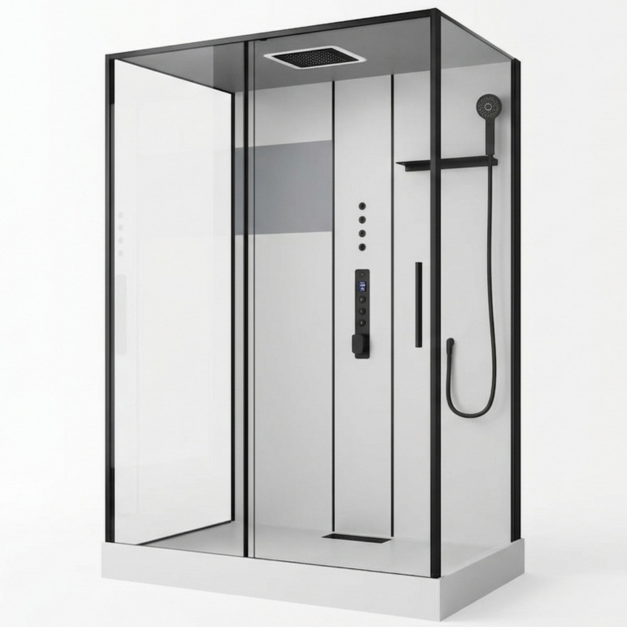 Душевая кабина Black & White G8050 GM устанавливается в угол и комплектуется поддоном, что упрощает монтаж. Раздвижная система дверей работает плавно и надёжно, а гладкие поверхности легко очищаются с помощью мягких неабразивных средств.