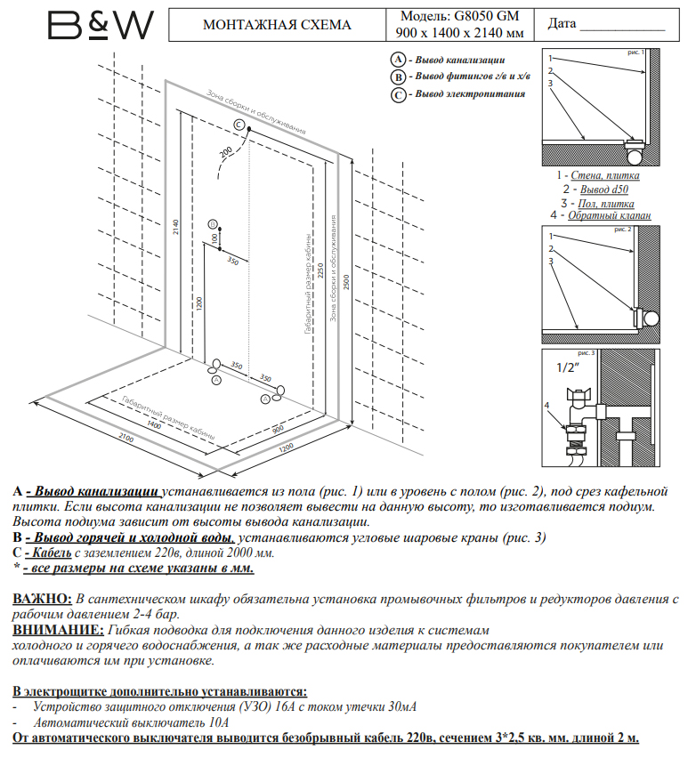 | Монтаж | Пристенный/ реверсивная модель |