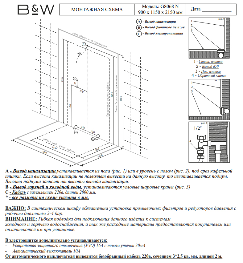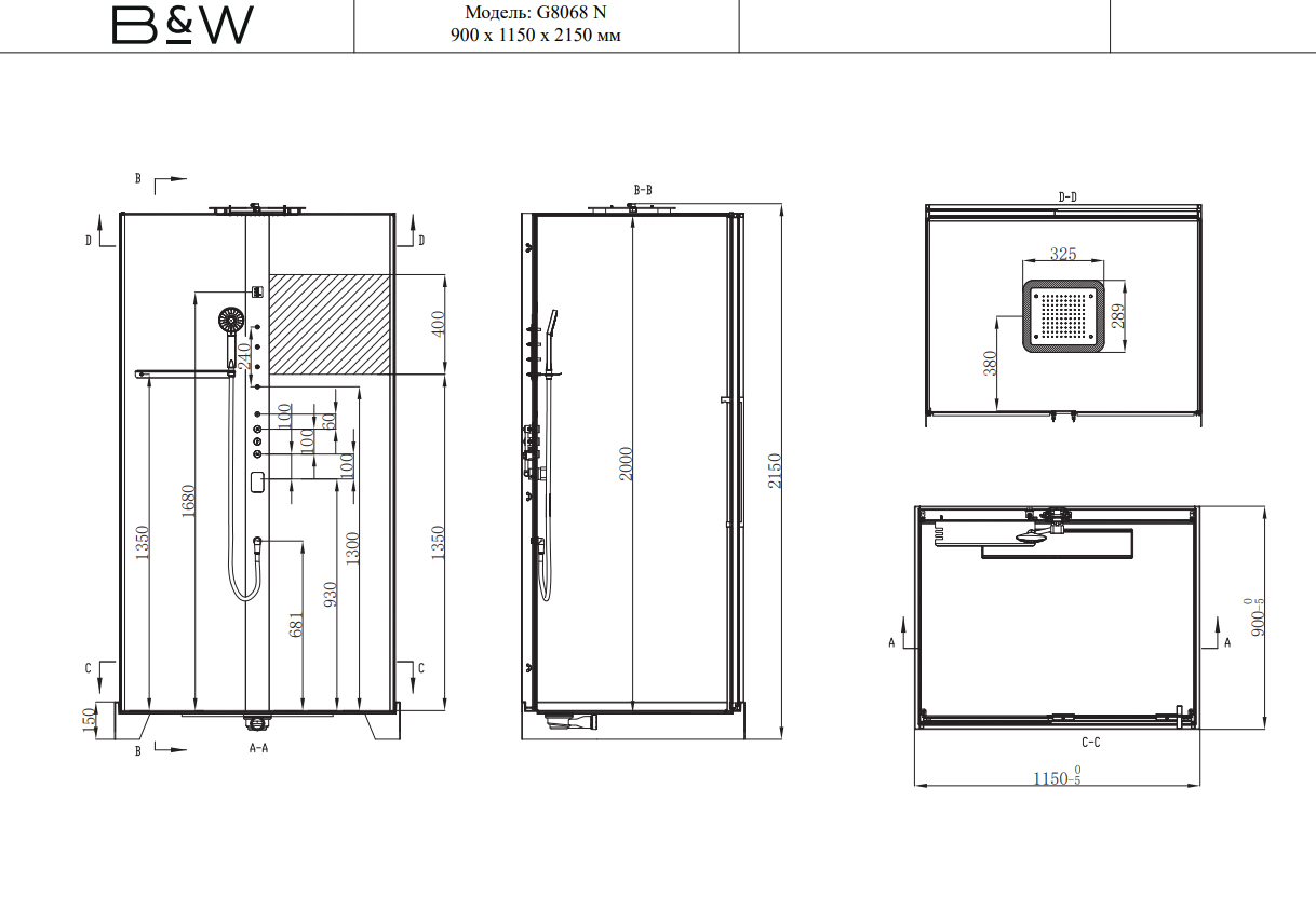 Душевая кабина Black & White Galaxy G8068N 115х90х215 см никель/прозрачное 8068N