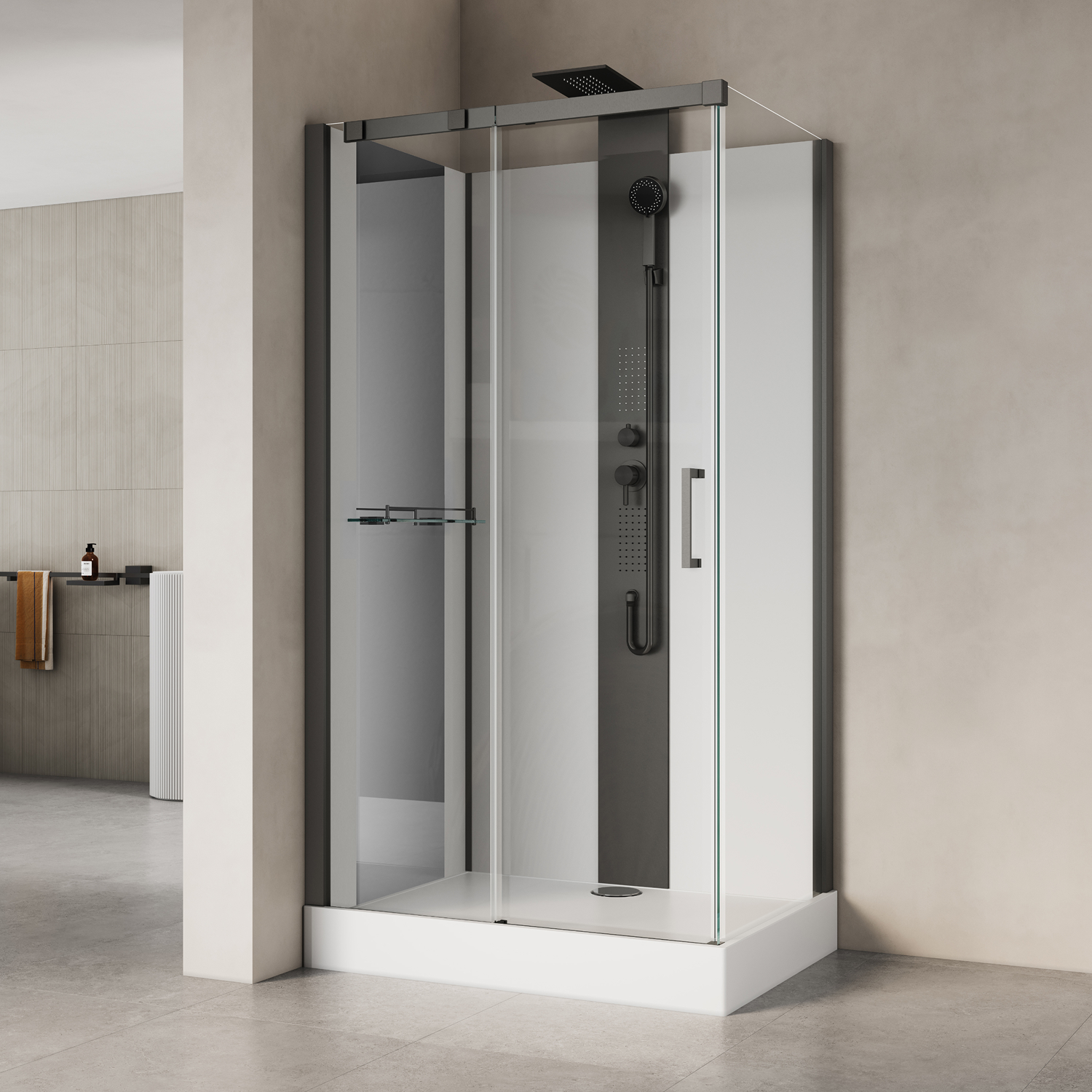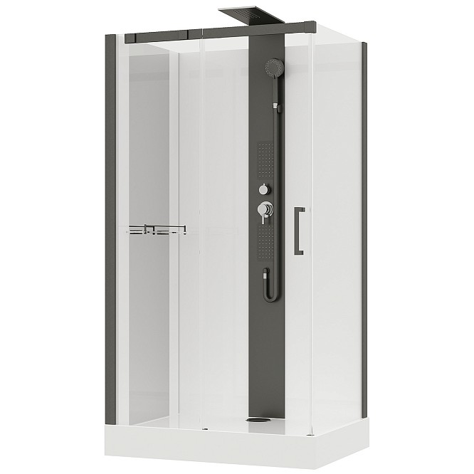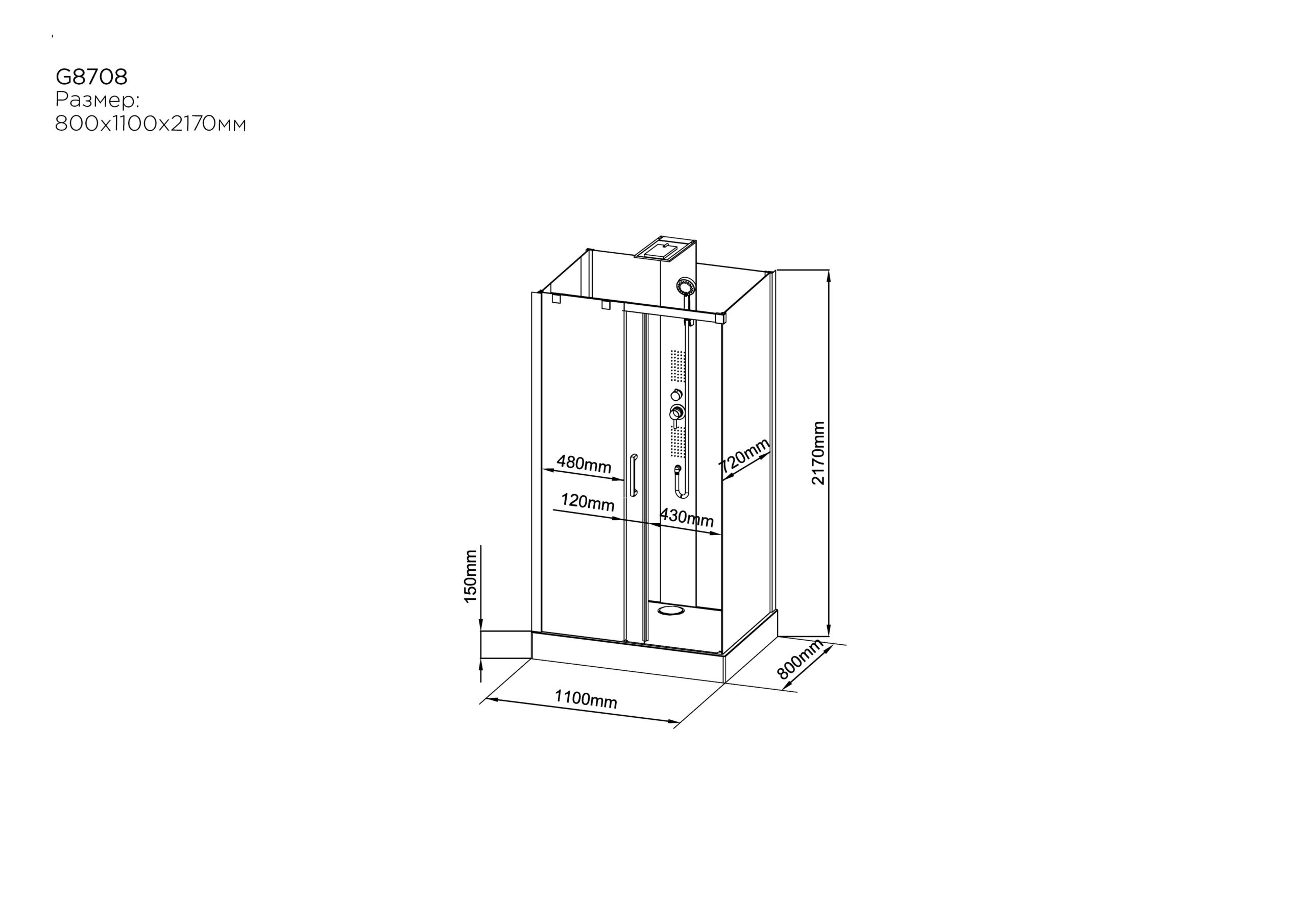 | Оснащение | Верхний душ, ручной душ 2 положения, шланг гладкий усиленный, смеситель, полка, зеркало |