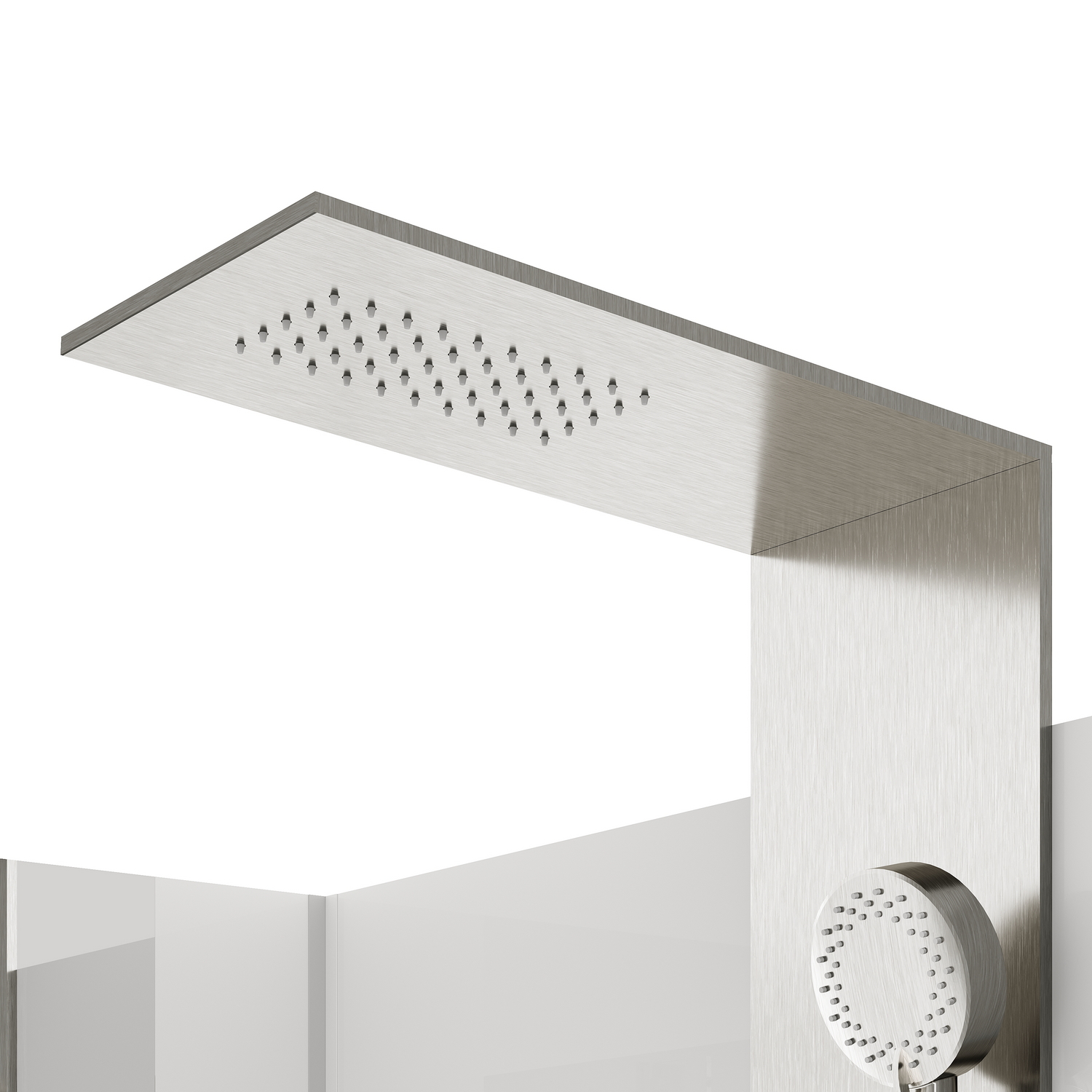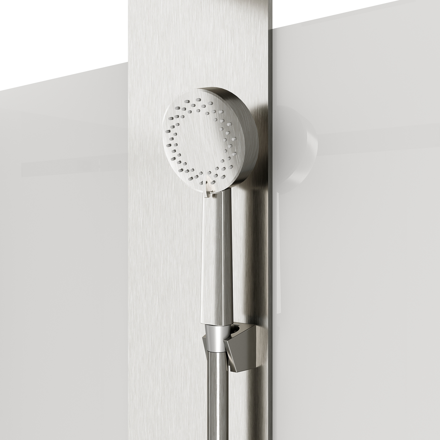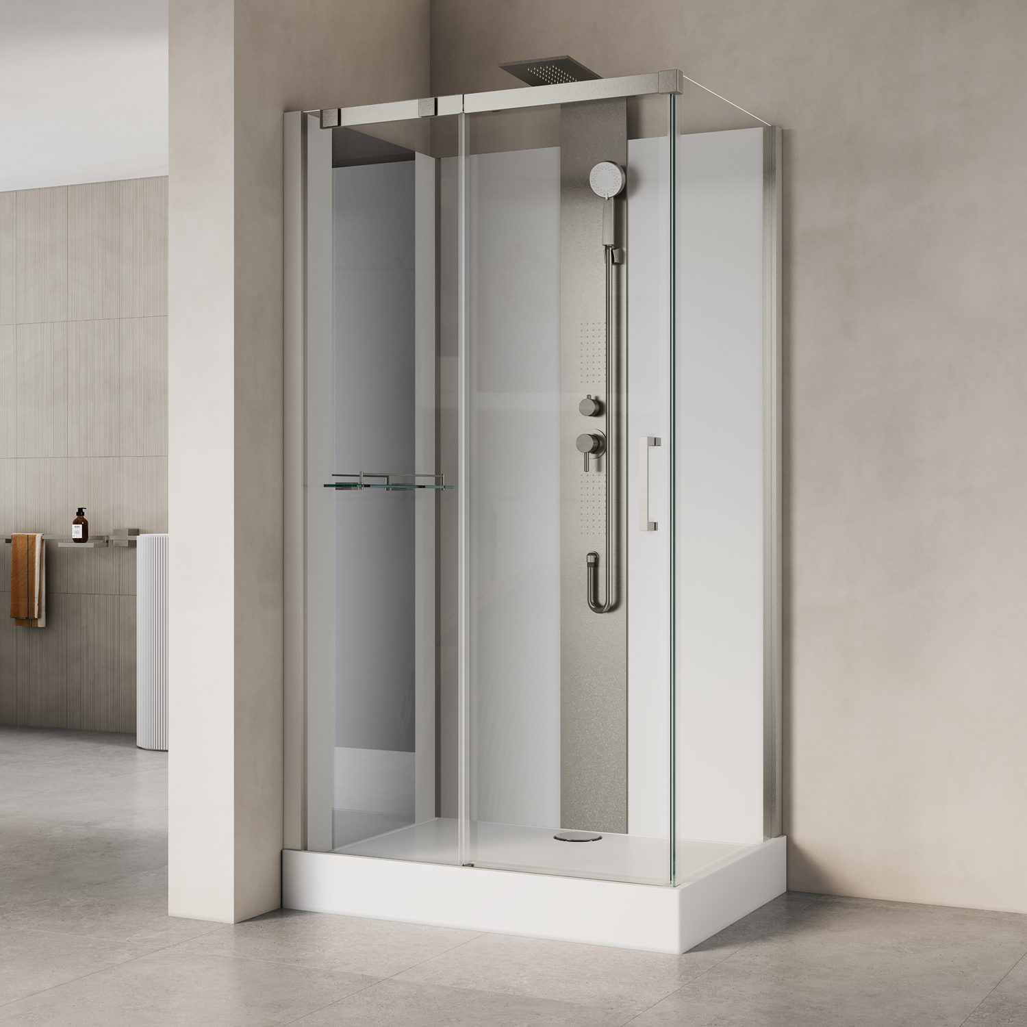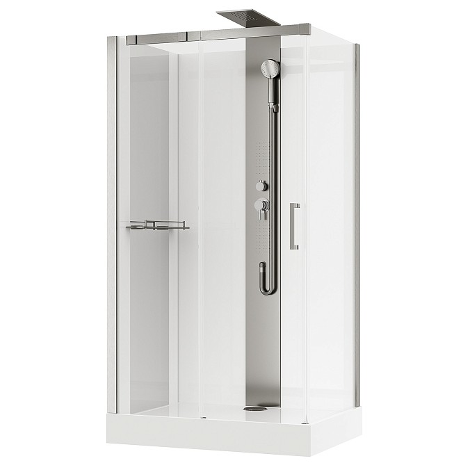 | Оснащение | Верхний душ, ручной душ 2 положения, шланг гладкий усиленный, смеситель, полка, зеркало |