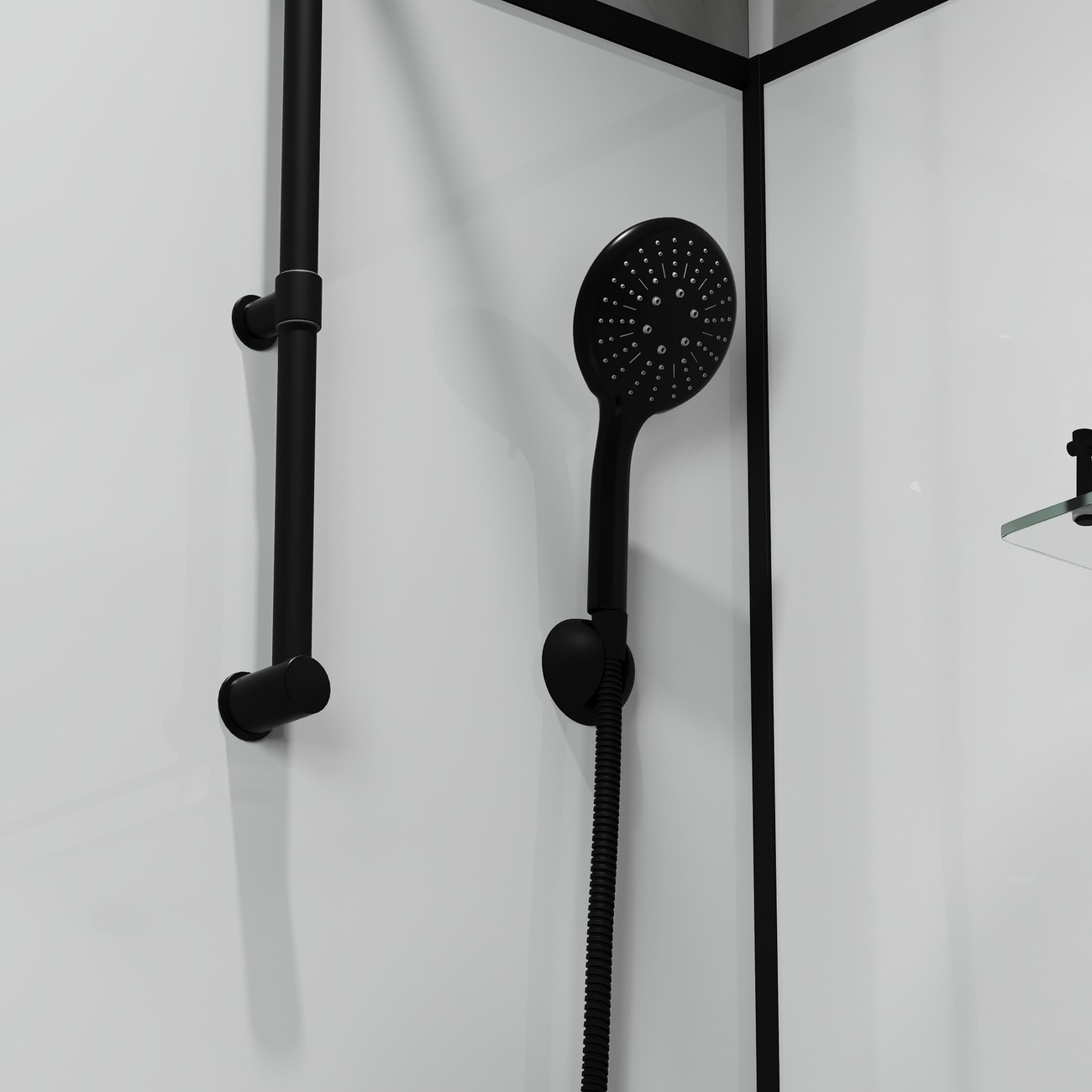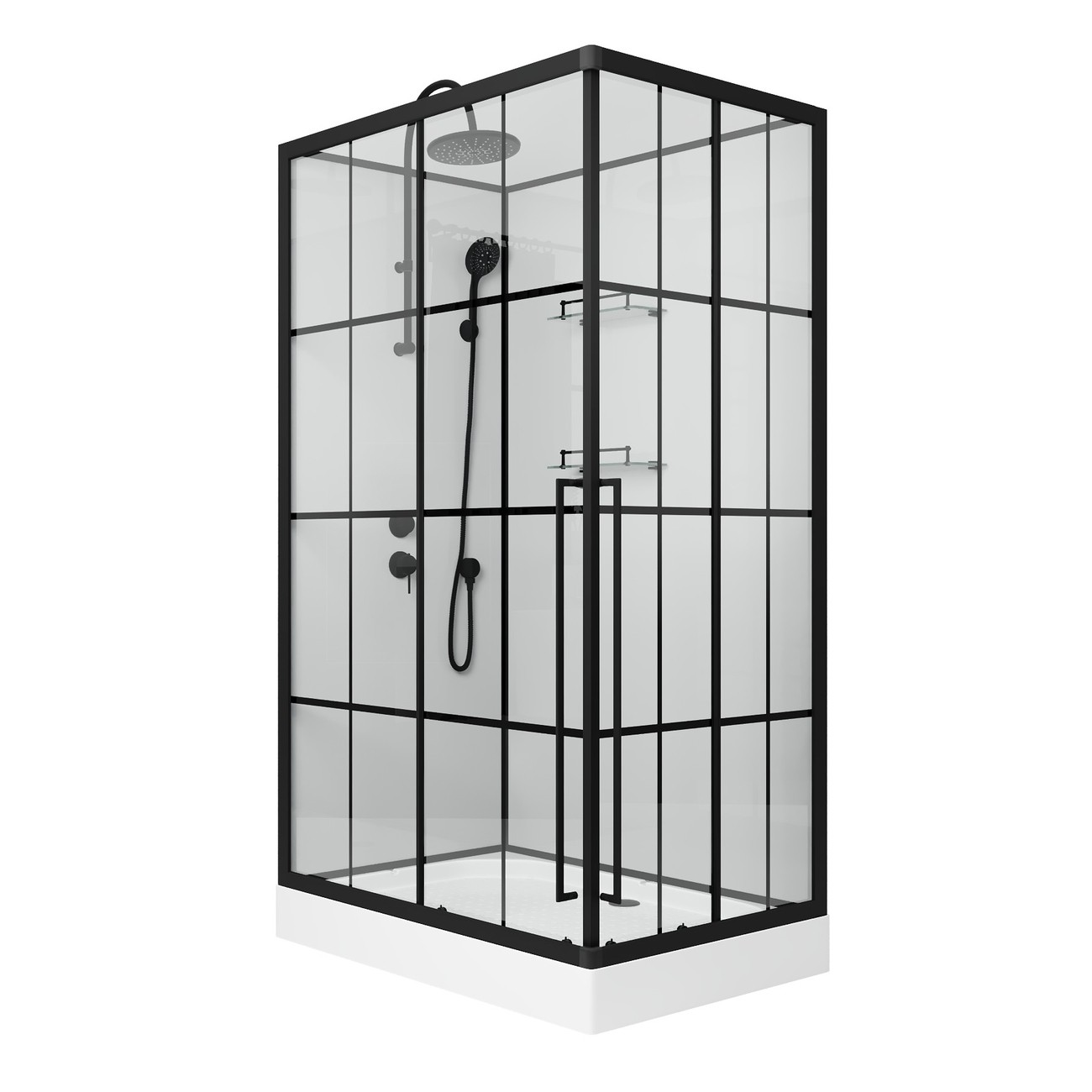 | Оснащение | Верхний душ, душевой гарнитур, смеситель, 2 полочки |