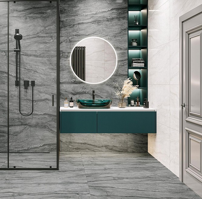 Мрамор сорта Botticino встречается в итальянских месторождениях преимущественно в бежевой гамме. В серии Bottichino керамогранит представлен в трех оттенках: теплом сером, красновато-бежевом и в цвете графит. Тонкий рисунок мраморных жил на формате 600x600 мм подчеркивается рельефной фактурой керамогранита и позволяет создать интерьер в любом стиле от современного до классического.
