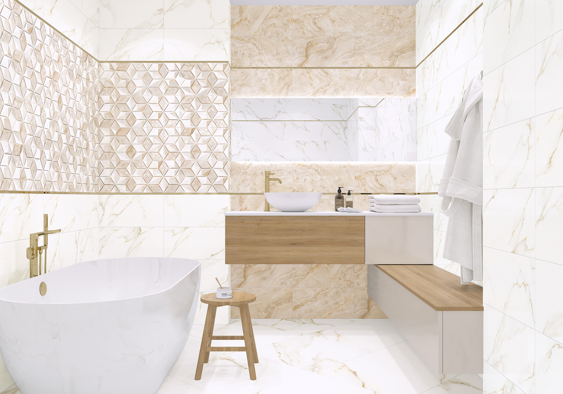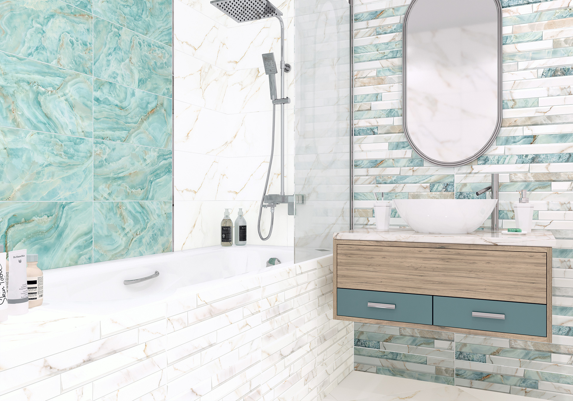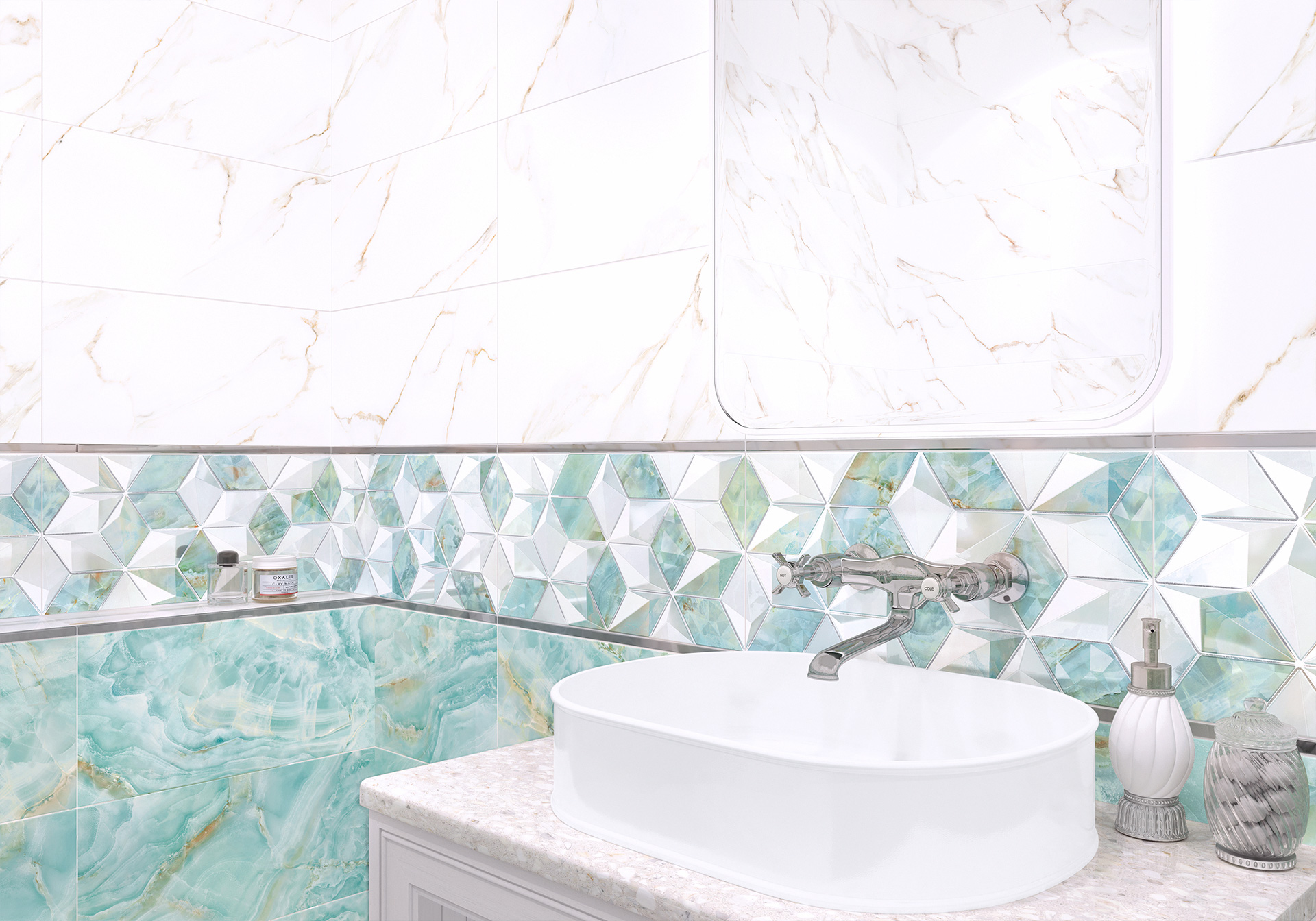 В лаппатированном керамограните реалистично воплощен белый мрамор Статуарио. Этот мрамор характерен ярким белым фоном. Коллекция Nevada привнесет воздуха в помещение и будет центром внимания. Яркая и самобытная коллекция словно разноцветное полотно – каждый может выбрать себе сочетание по вкусу. Глянцевая настенная плитка 249x500 представлена двух колористиках и дополнена универсальной светлой базой с текстурой мрамора сорта Calacatta Gold. При создании теплой гаммы дизайнеры вдохновлялись природой Америки: бескрайней пустыней, необыкновенными каньонами и высокими скалами. Базовая плитка представлена в тёплом медовом оттенке оригинального оникса. Украшением данной коллекции стал глянцевый декоративный элемент. Золотые линии придают ему элегантности и изящества, а люстр — зеркальный блеск. Базовая плитка холодной гаммы представлена в натуральном оттенке оникса Emerald и декоративным массивом с 3D-рисунком в виде объемной нарезки. Декором с узором стилизованного геометрического цветка бирюзовых и жемчужных оттенков, украшенного утонченными серебристыми линиями и зеркальным эффектом люстра. Ректифицированный край керамогранита для пола позволяет сделать укладку с минимальным швом, а лаппатированный эффект поверхности сделает интерьер более нарядным. Металлические бордюры Metallic Glossy привнесут в интерьер торжественность.