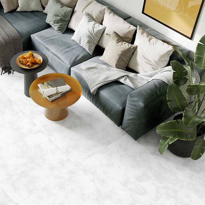 Матовый керамогранит реалистично передает текстуру штукатурки, что выглядит свежо и нестандартно. Подобное отделочное решение актуально не только в современных стилях лофт, минимализм, хай-тек, но и применимо в современной классике.
