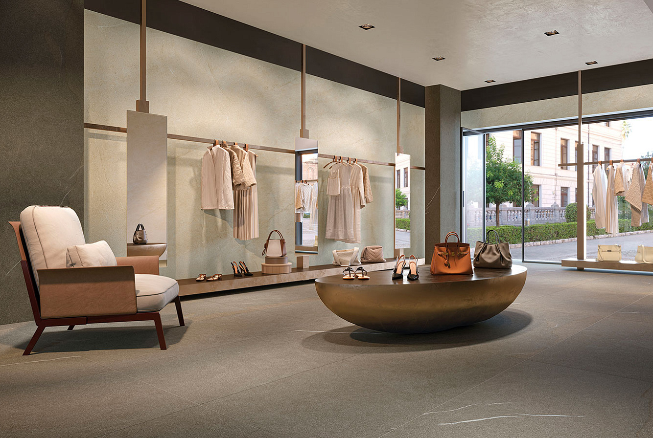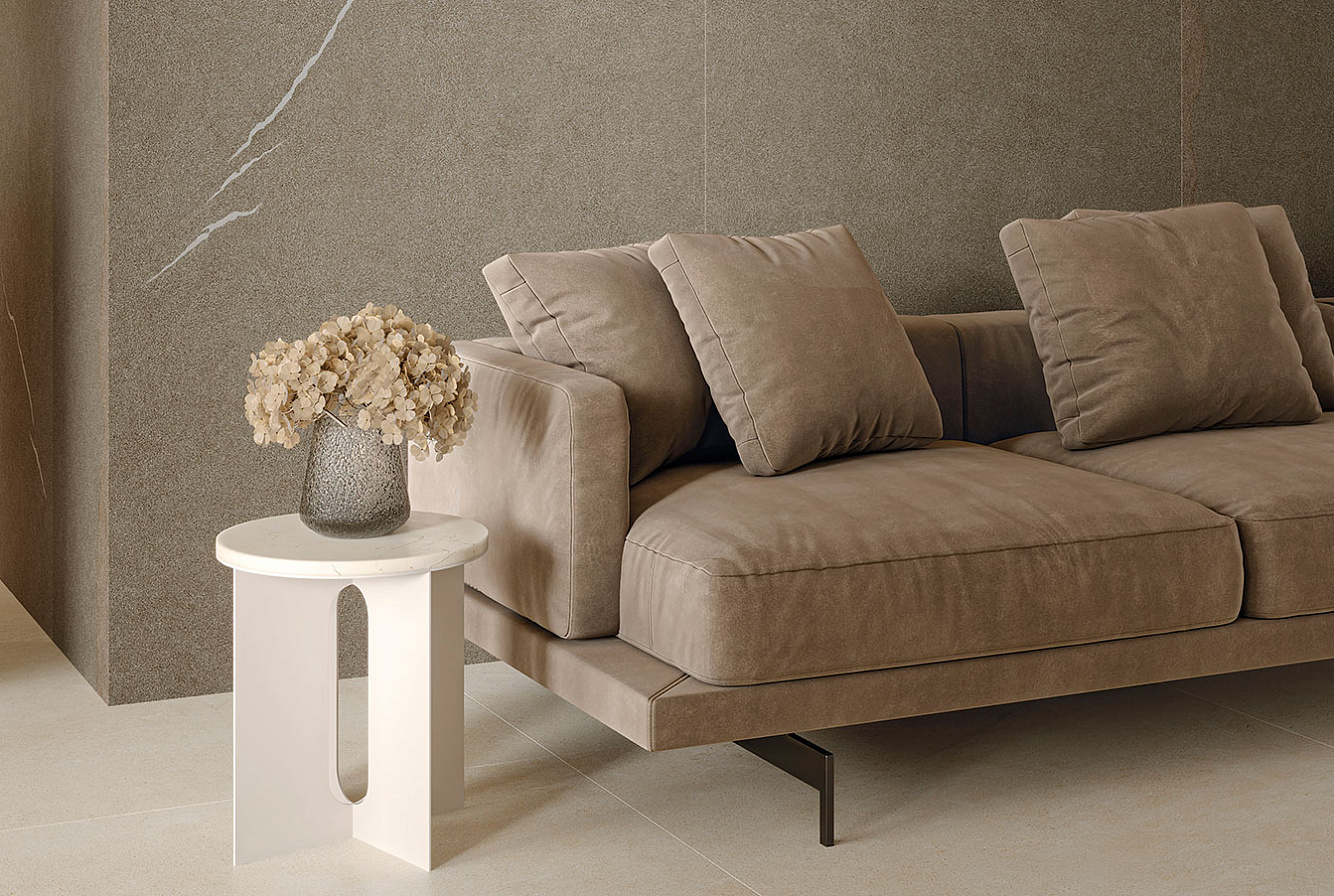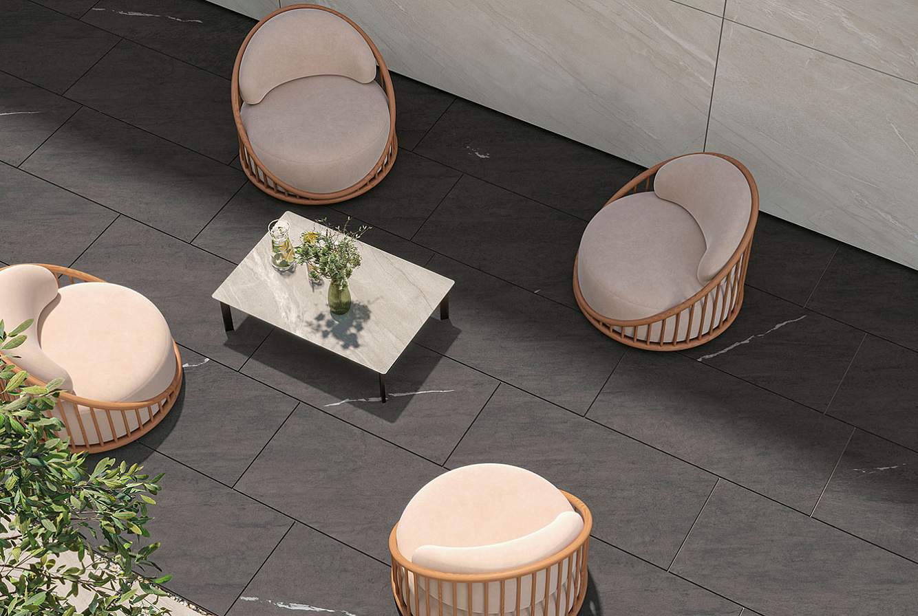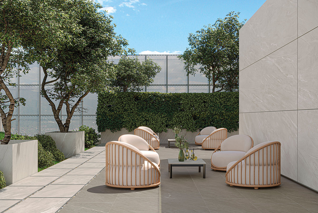 Серия производится в четырех популярных форматах: 120x278 см (толщина материала 6 мм), 80x160 см, 120x120 см, 60x120 см (толщина 9 мм) с матовой поверхностью, которые дополнены форматами 60x120 см и 60х60 см толщиной 20 мм для проектов, объединяющих внутренние и внешние пространства.