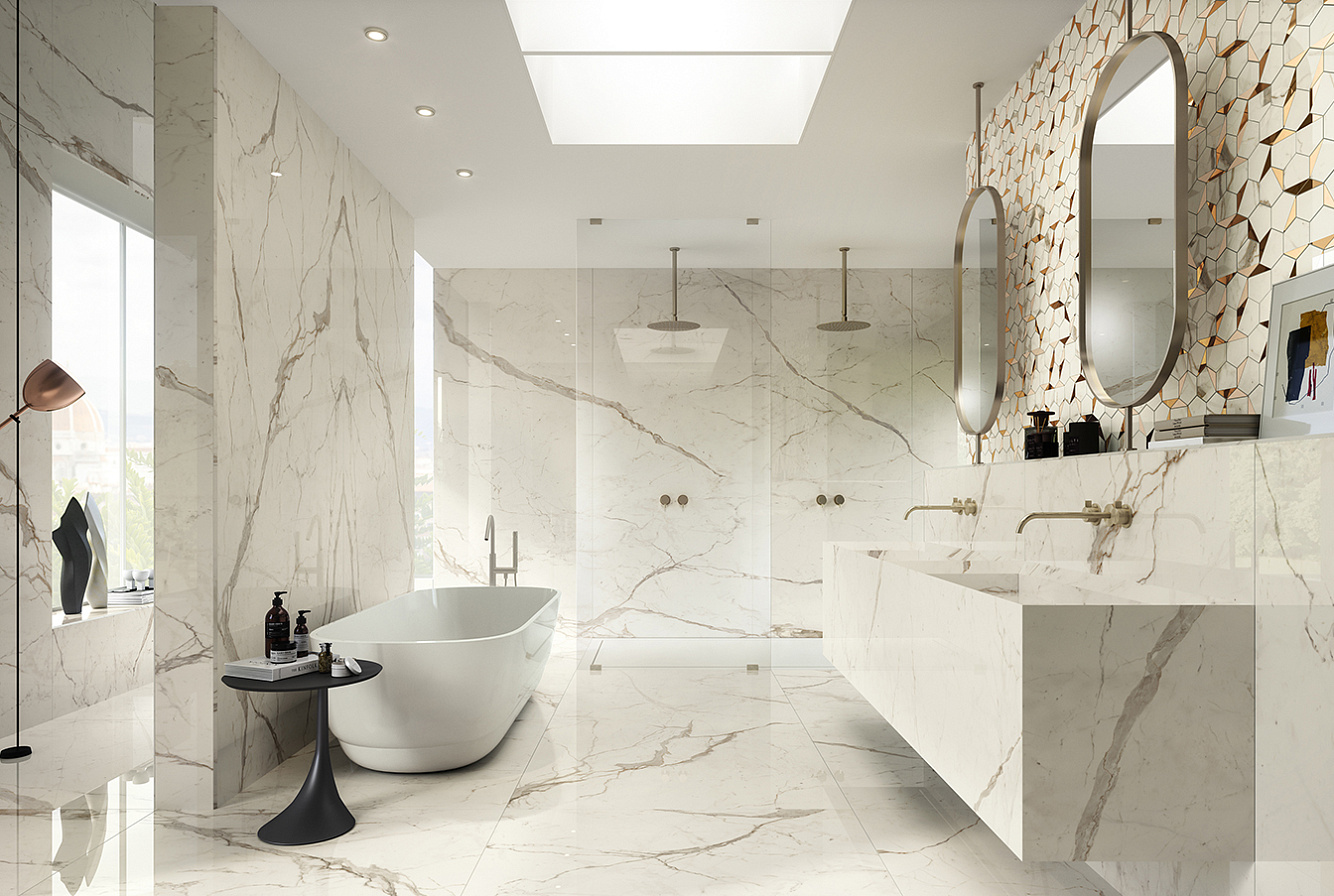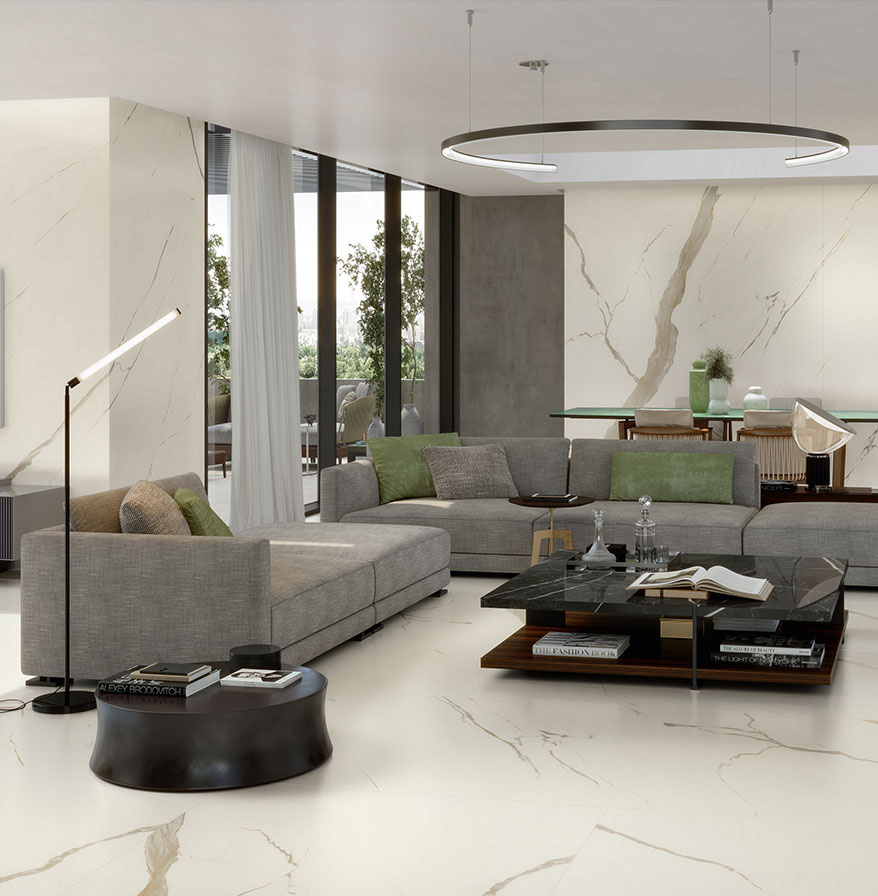 Большие форматы обладают огромным эстетическим и композиционным потенциалом, их можно укладывать в жилых и коммерческих пространствах.