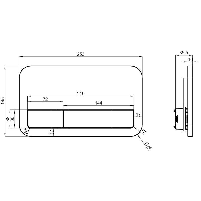 Размеры 253х35х145 мм
