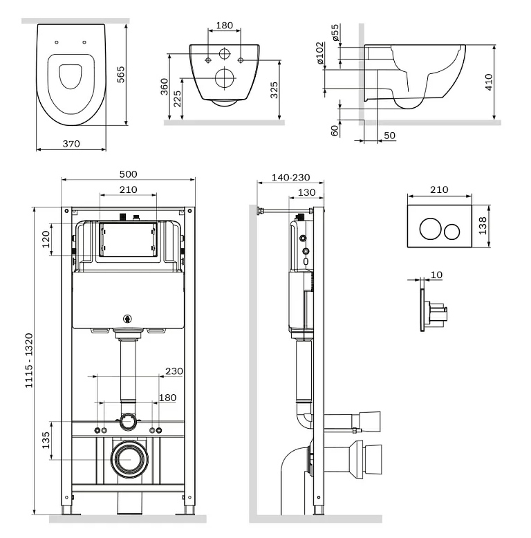 Размеры инсталляции: 50х14-23х111,5-132 см
