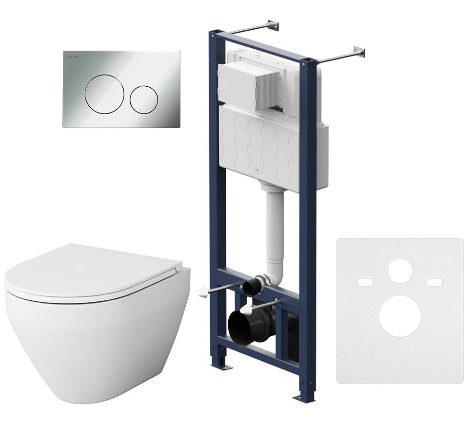 400 кг. Полностью изолированный бачок с качественной двухрежимной смывной арматурой - комфортное использование благодаря низкому уровню шума - менее 20 Дб. Укомплектован пневматической клавишей в цвете глянцевый хром. В комплекте все необходимые патрубки и крепления, а также прокладка между унитазом и стеной - звукоизоляция.