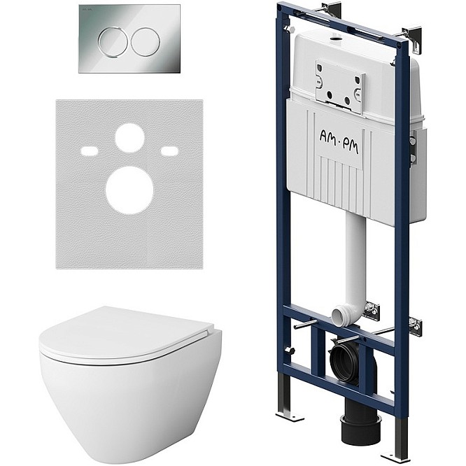 Инсталляция с унитазом AM.PM Spirit 2.0 FlashClean клавиша хром IS100151.701700