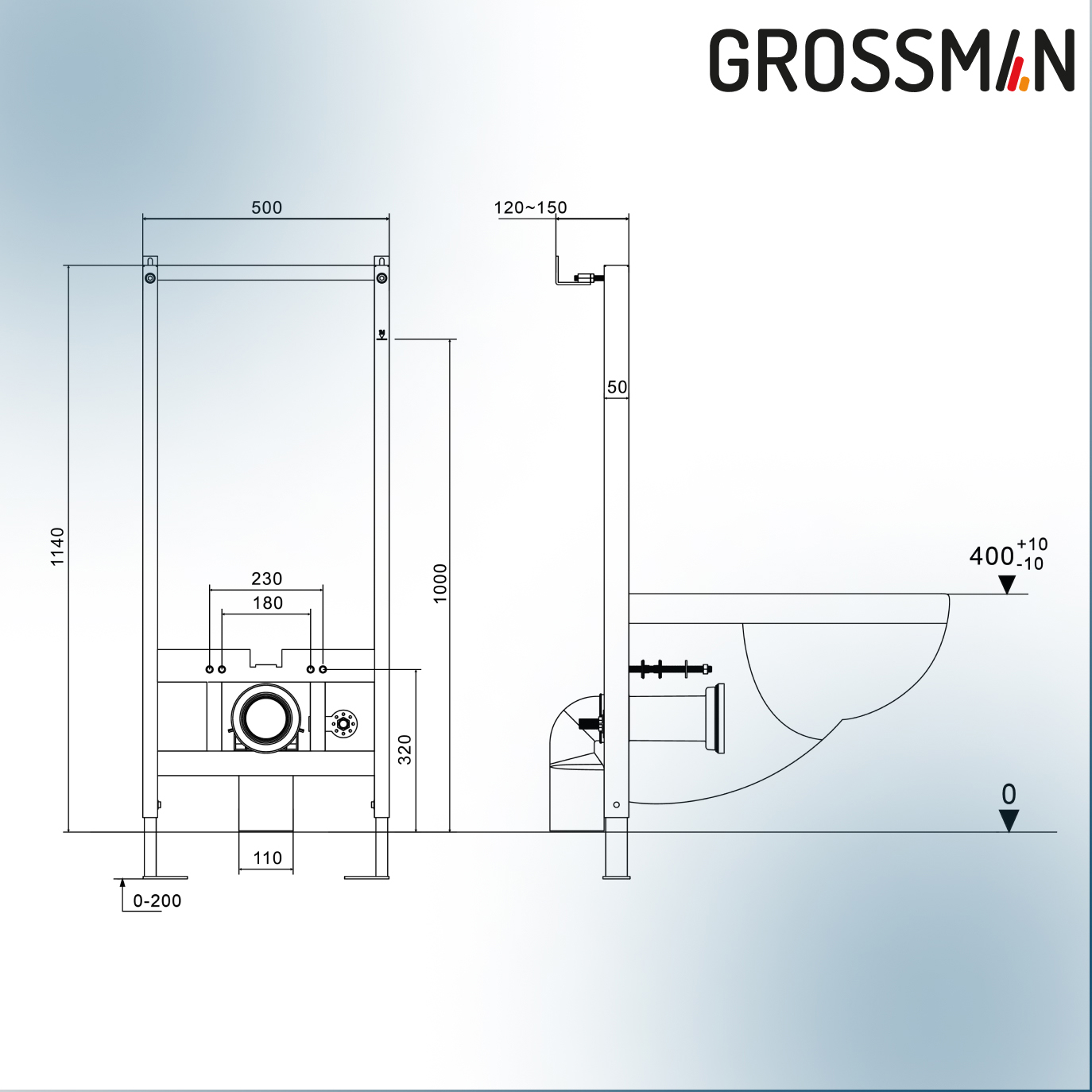 1. Инсталляция для подвесного унитаза Grossman с импульсным смывом GR-901.K31.01.000 (500х60х1140)