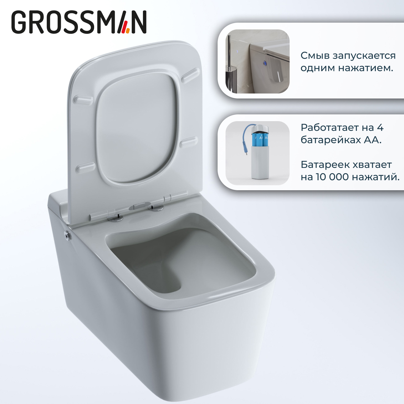 2. Унитаз подвесной Grossman impuls GR-5501 (590х360х385) безободковый, белый с тонкой крышкой,микролифт