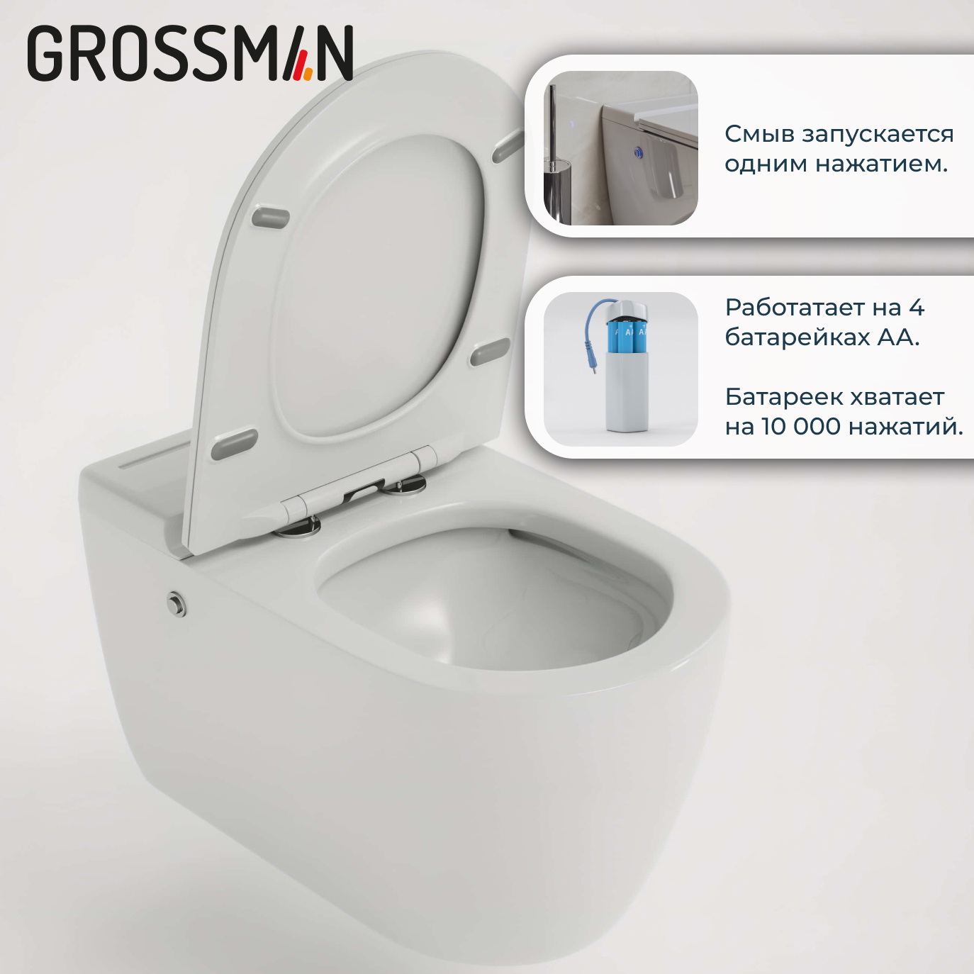 2. Унитаз подвесной Grossman impuls GR-5502 (570х360х375) безободковый, белый с тонкой крышкой,микролифт